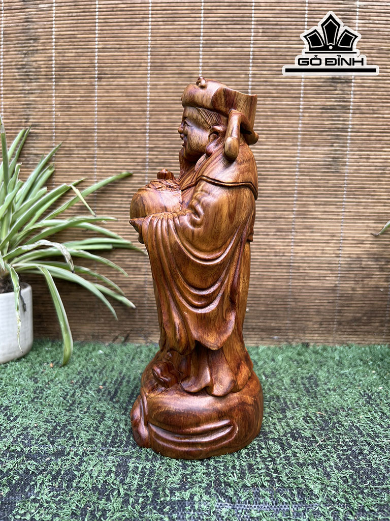 Tượng Thần Tài Gỗ Sưa Cao 24 Ngang 12 Sâu 10 (cm)