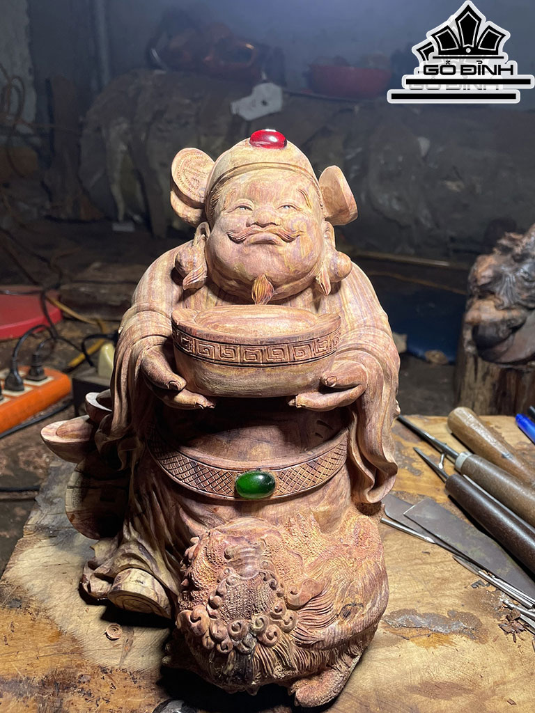 Tượng Thần Tài Gỗ Sưa Cao 25 Ngang 21 Sâu 14 (cm)