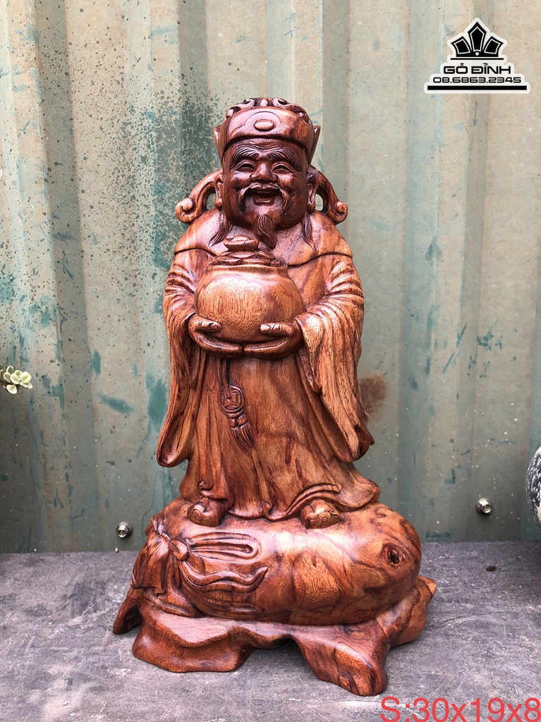 Tượng Thần Tài Gỗ Sưa Cao 30 Ngang 19 Sâu 8 (cm)