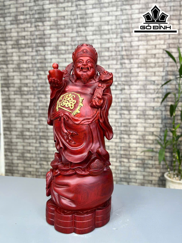 Tượng Thần Tài Gỗ Tử Đàn Cao 60 Ngang 22 Sâu 20 (cm)