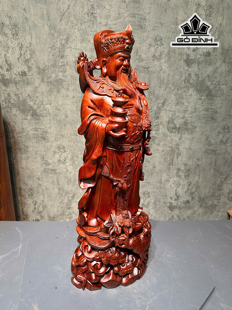 Tượng Thần Tài Gỗ Tử Đàn Cao 75 Ngang 27 Sâu 23 (cm)