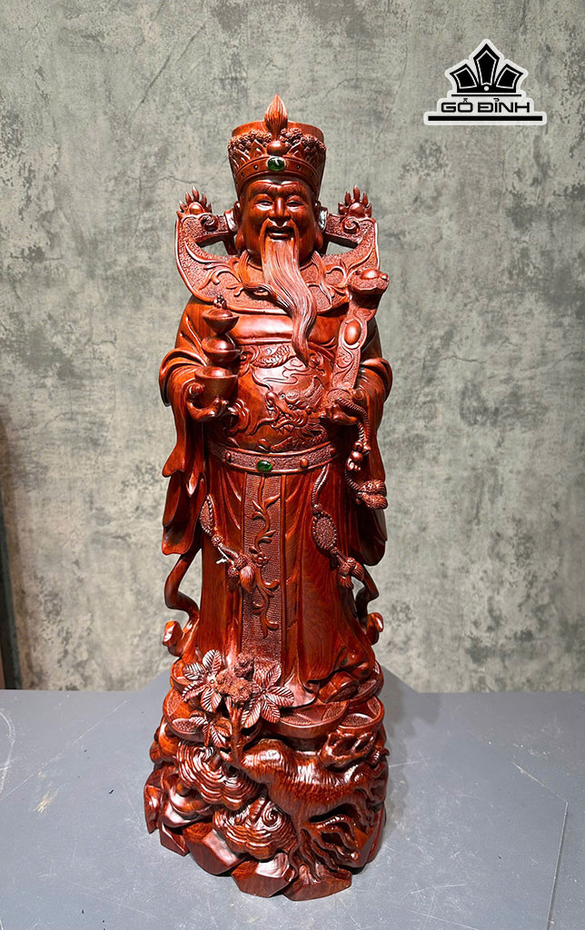 Tượng Thần Tài Gỗ Tử Đàn Cao 75 Ngang 27 Sâu 23 (cm)