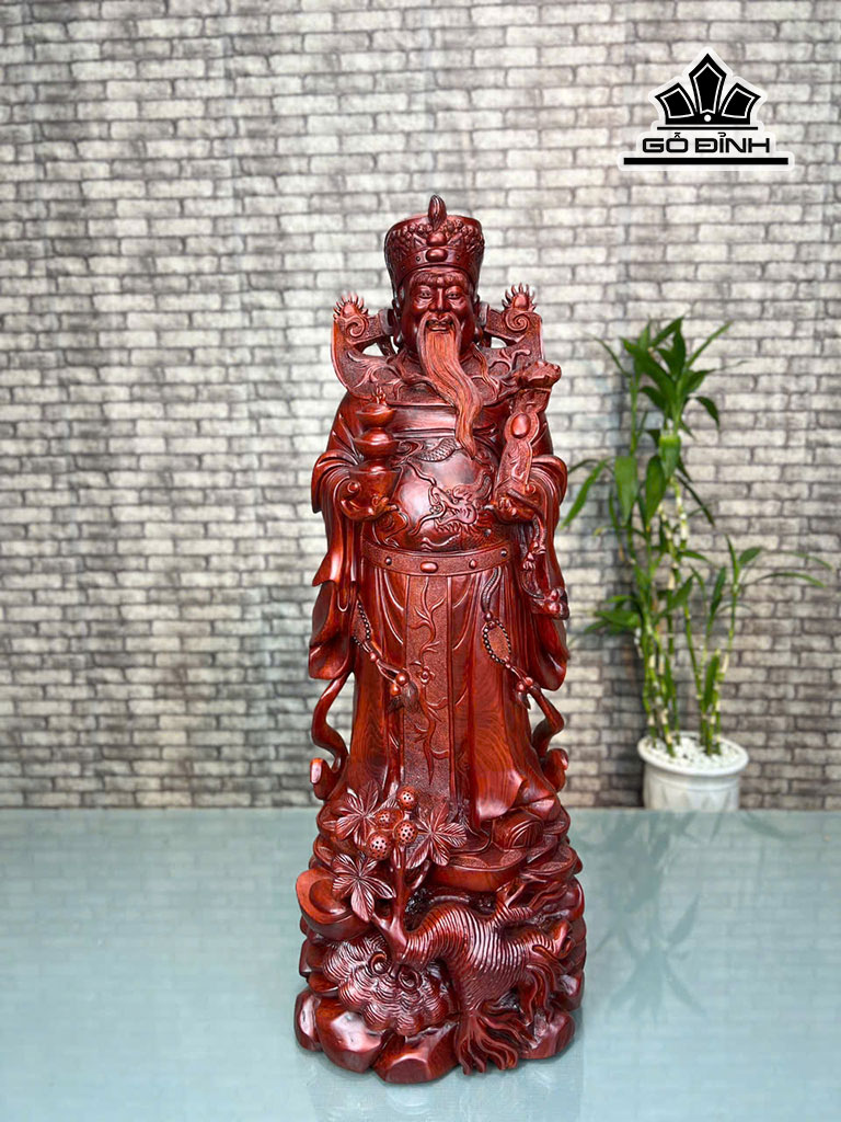 Tượng Thần Tài Gỗ Tử Đàn Cao 80 Ngang 30 Sâu 26 (cm)