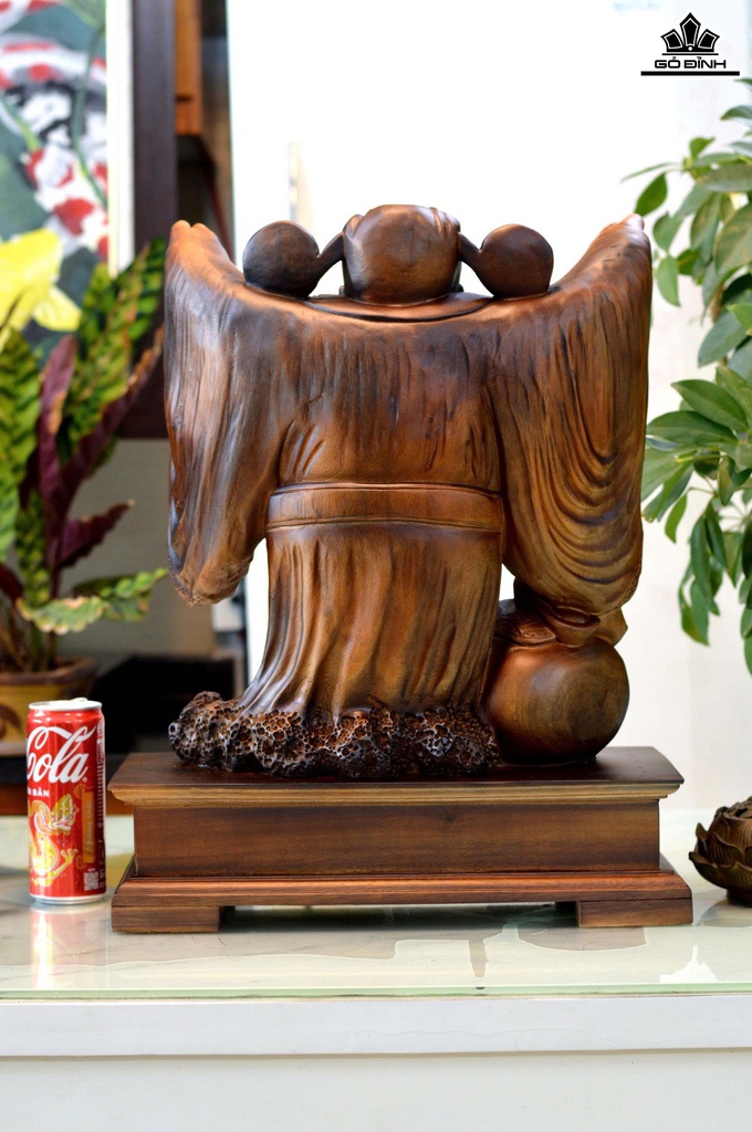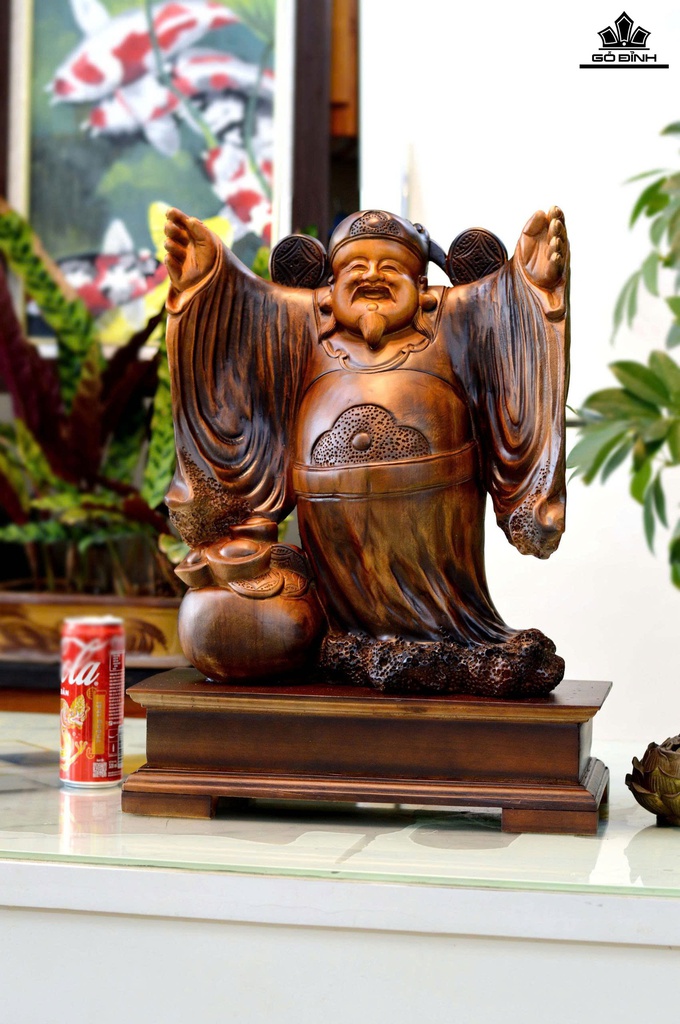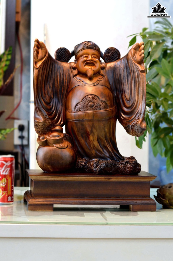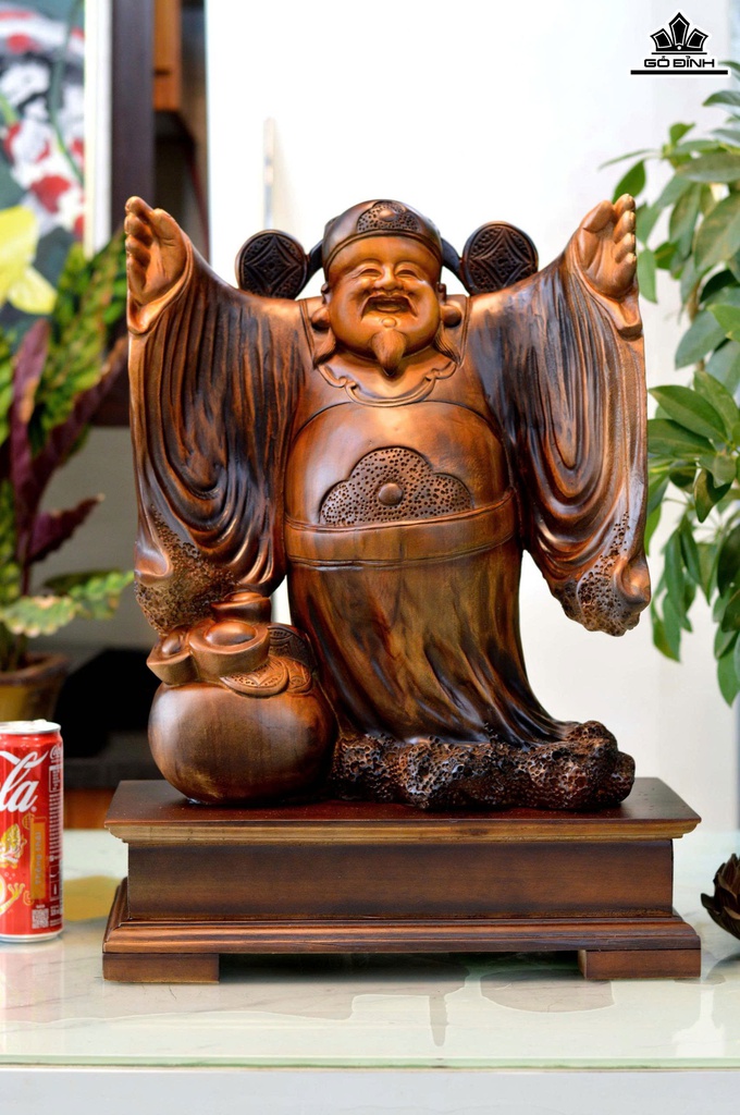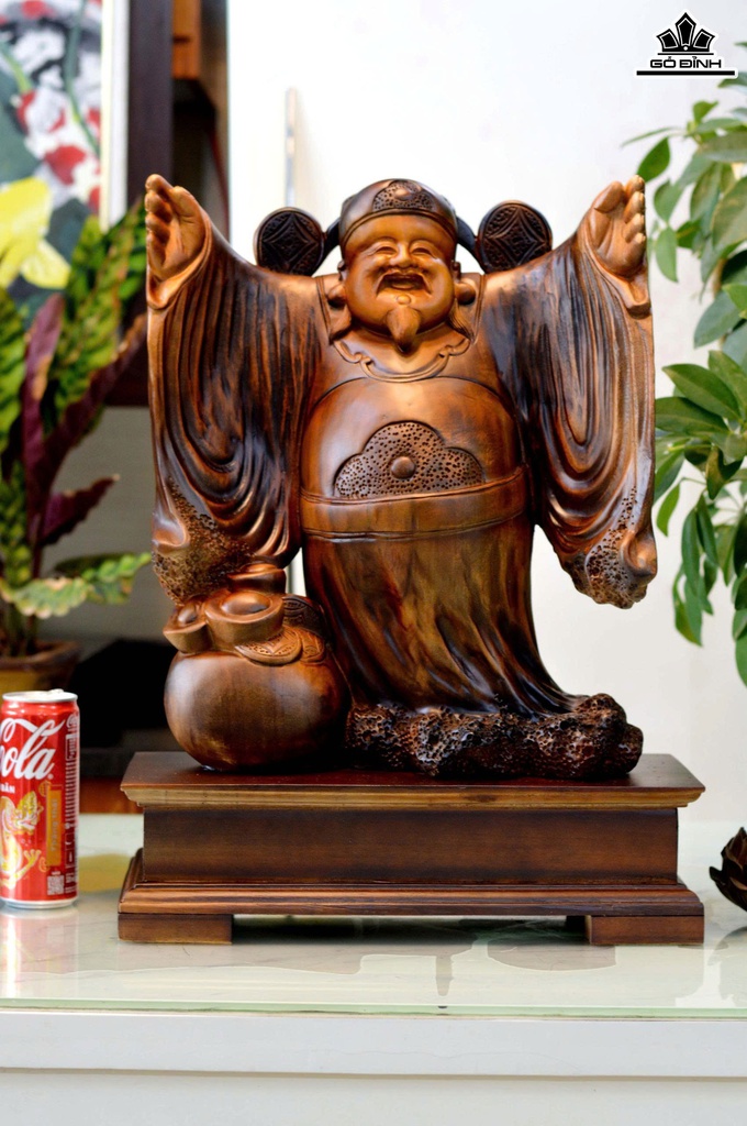 Tượng Thần Tài Gỗ Xá Xị Cao Cả Kỷ 50 Ngang 36 Sâu 13 (cm) - Kỷ Cao 10 (cm)