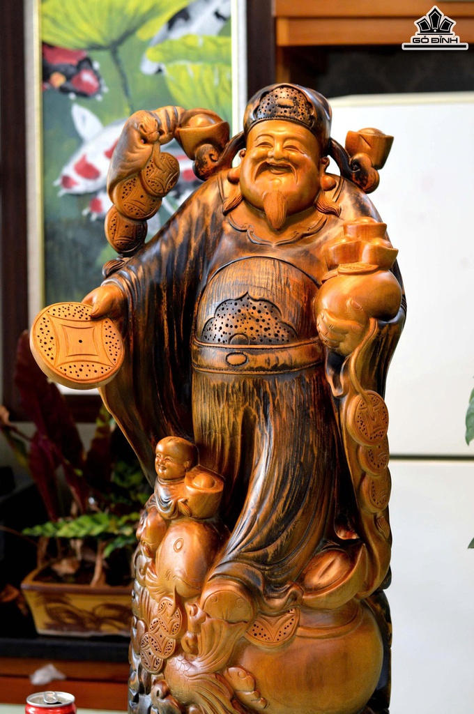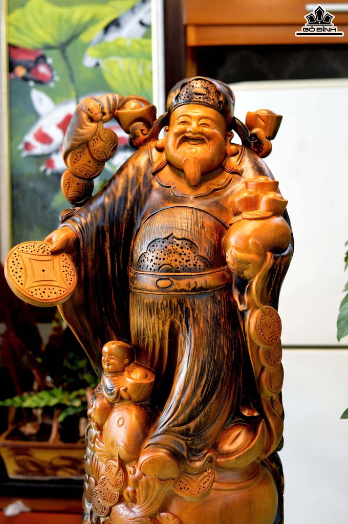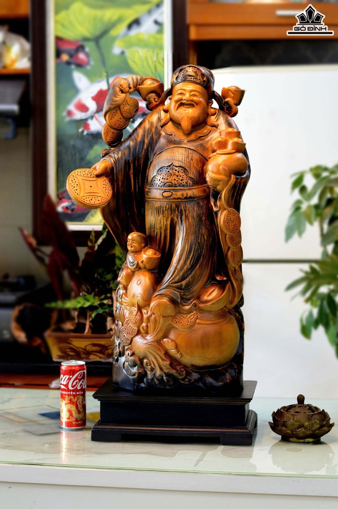 Tượng Thần Tài Gỗ Xá Xị Cao Cả Kỷ 80 Ngang 36 Sâu 20 (cm) - Kỷ Cao 10 (cm)