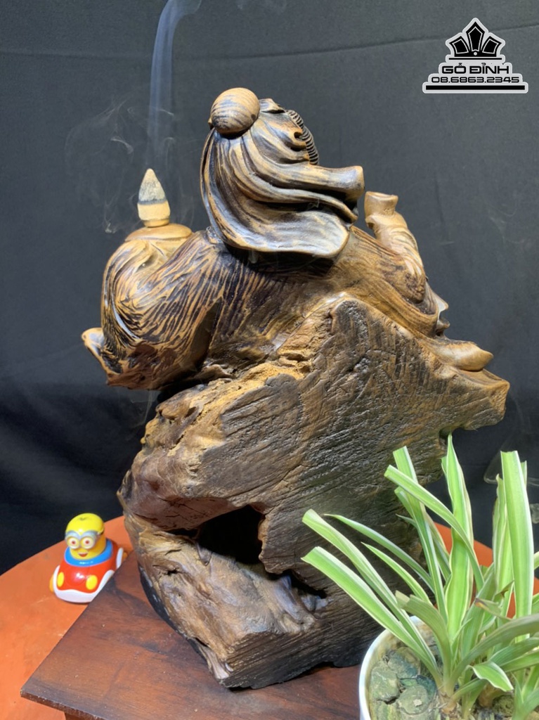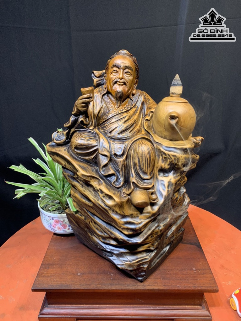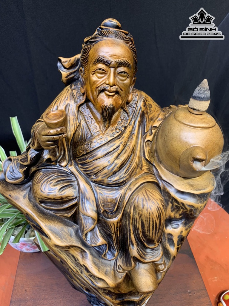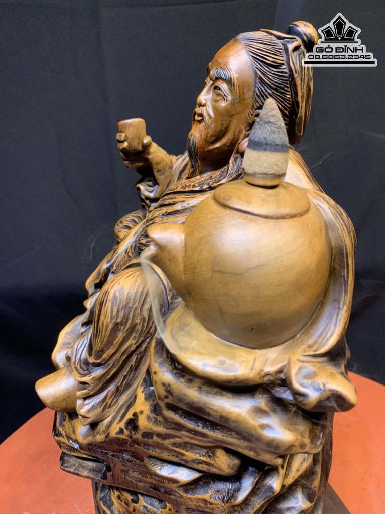 Tượng Thần Trà Gỗ Bách Xanh Cao 40 Ngang 28 Sâu 20 Cả Kỷ 48 (cm)
