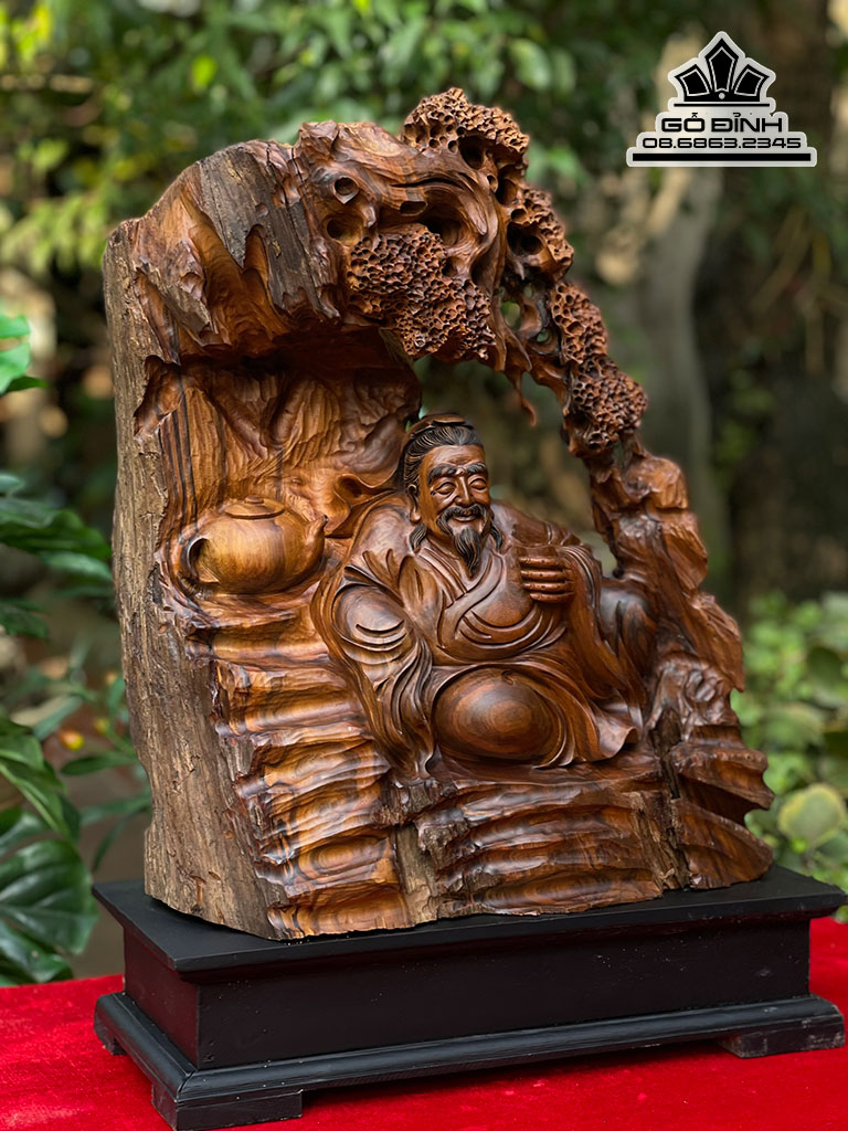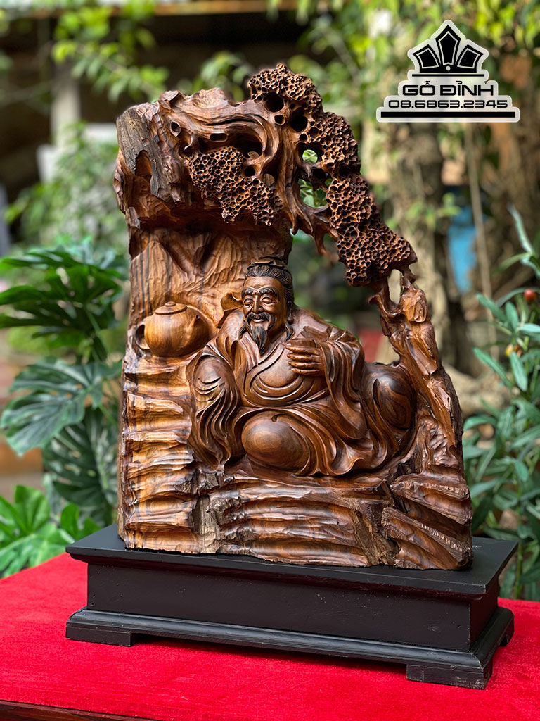 Tượng Thần Trà Gỗ Bách Xanh Cao 46 Ngang 38 Sâu 20 (cm)