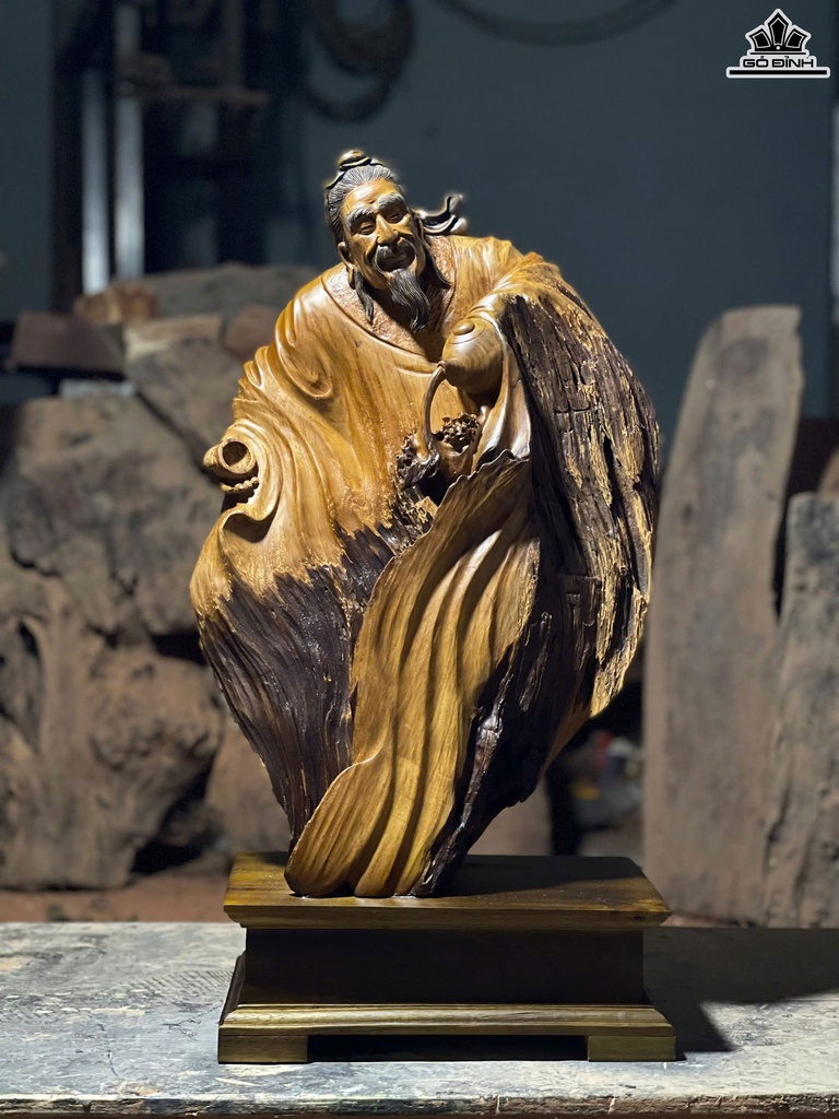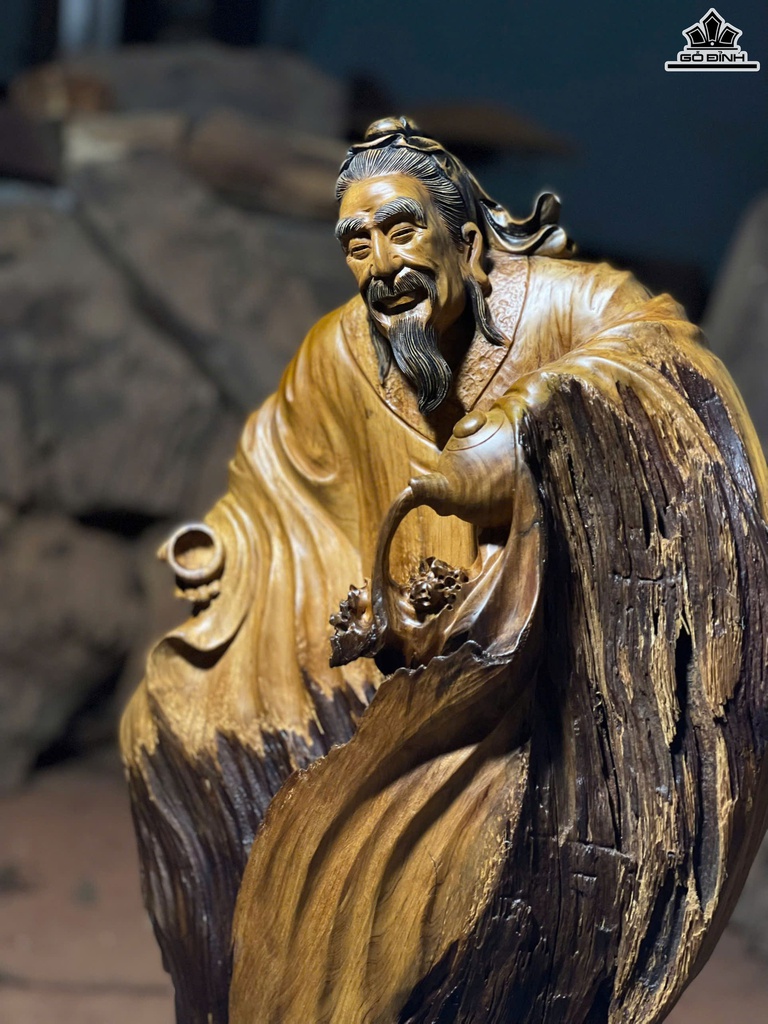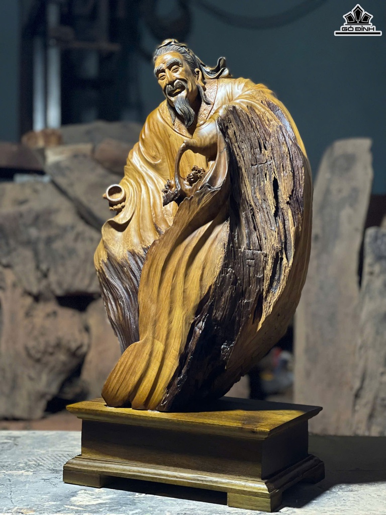 Tượng Thần Trà Gỗ Bách Xanh Cao 50 Ngang 30 Sâu 19 (cm)