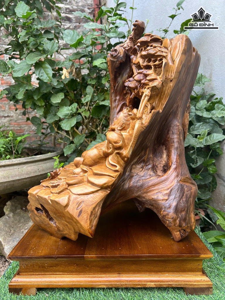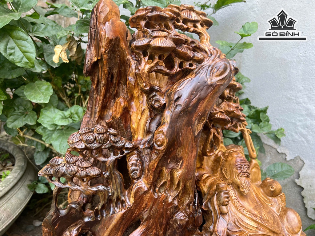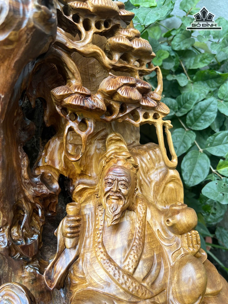 Tượng Thần Trà Gỗ Bách Xanh Cao 52 Ngang 45 Sâu 39 (cm)