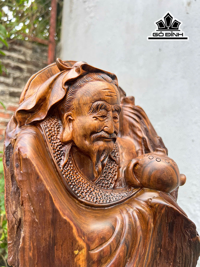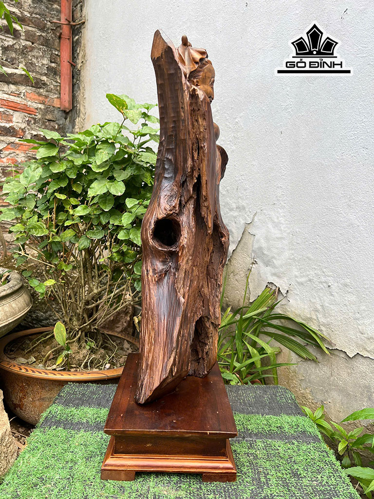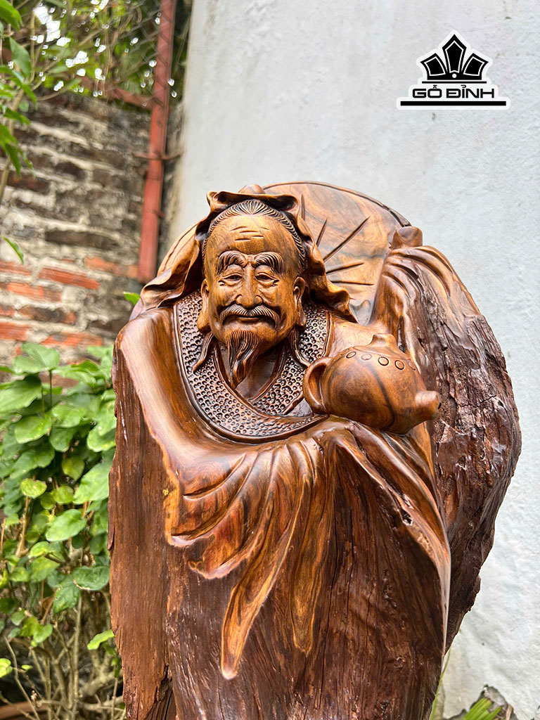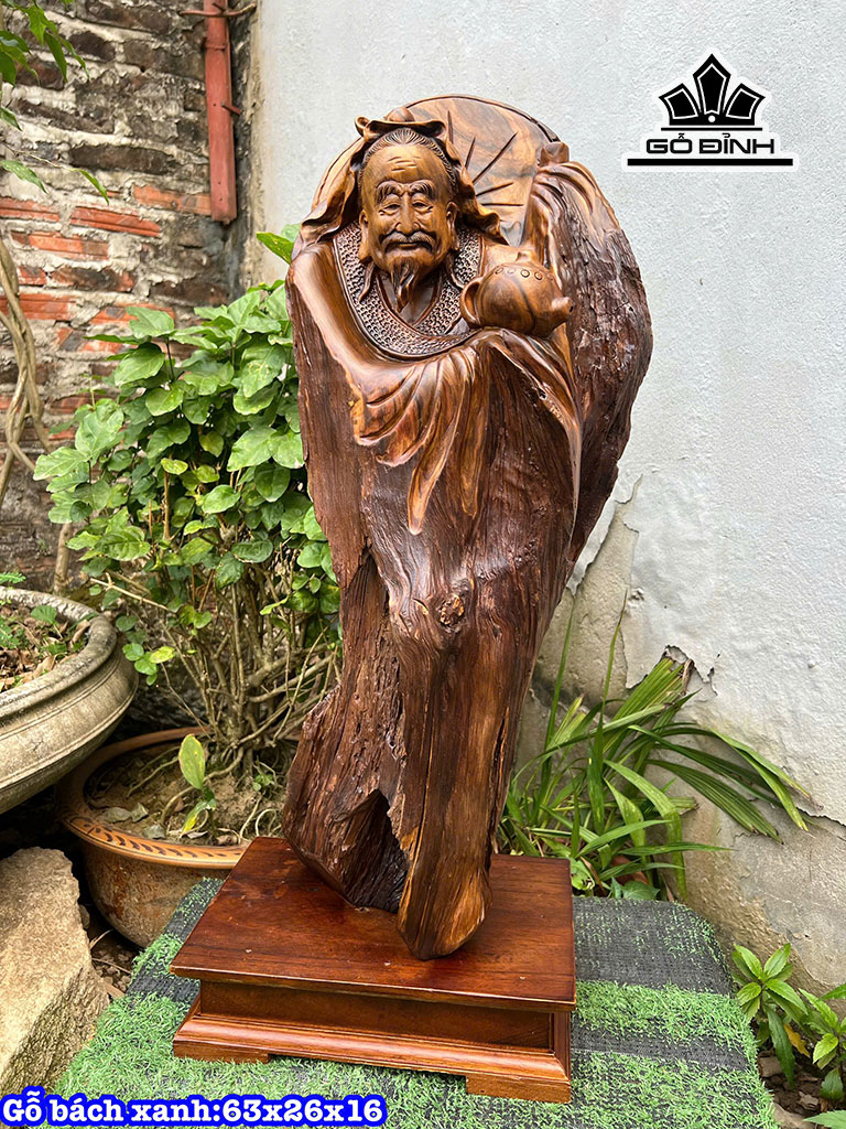 Tượng Thần Trà Gỗ Bách Xanh Cao 63 Ngang 26 Sâu 16 (cm)