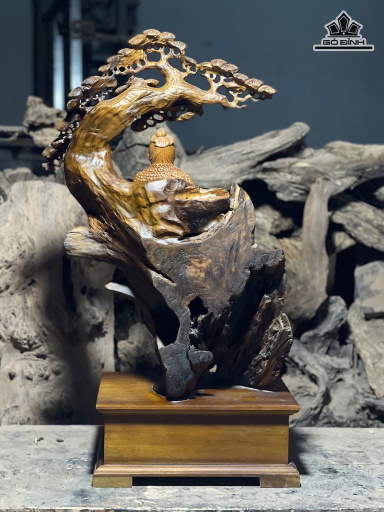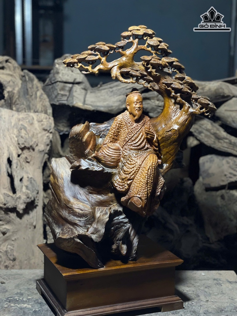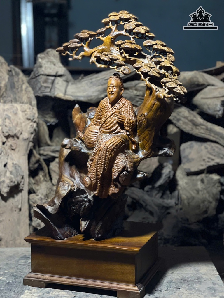 Tượng Thần Trà Gỗ Bách Xanh Cao 63 Ngang 40 Sâu 30 (cm)