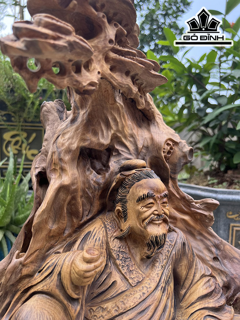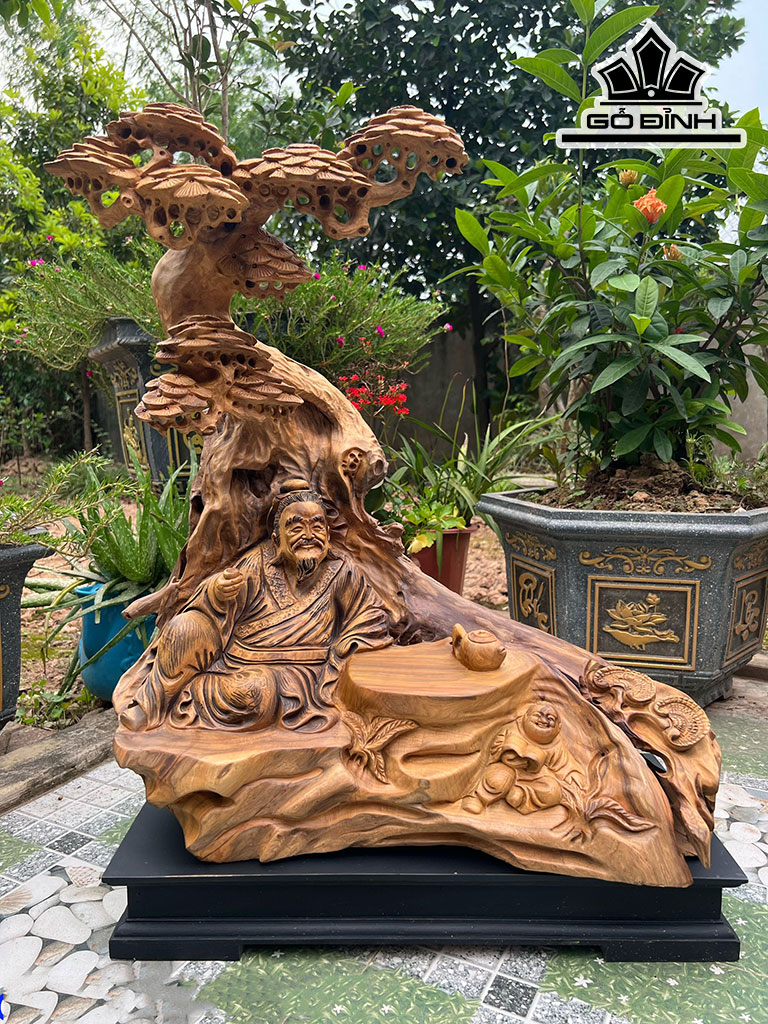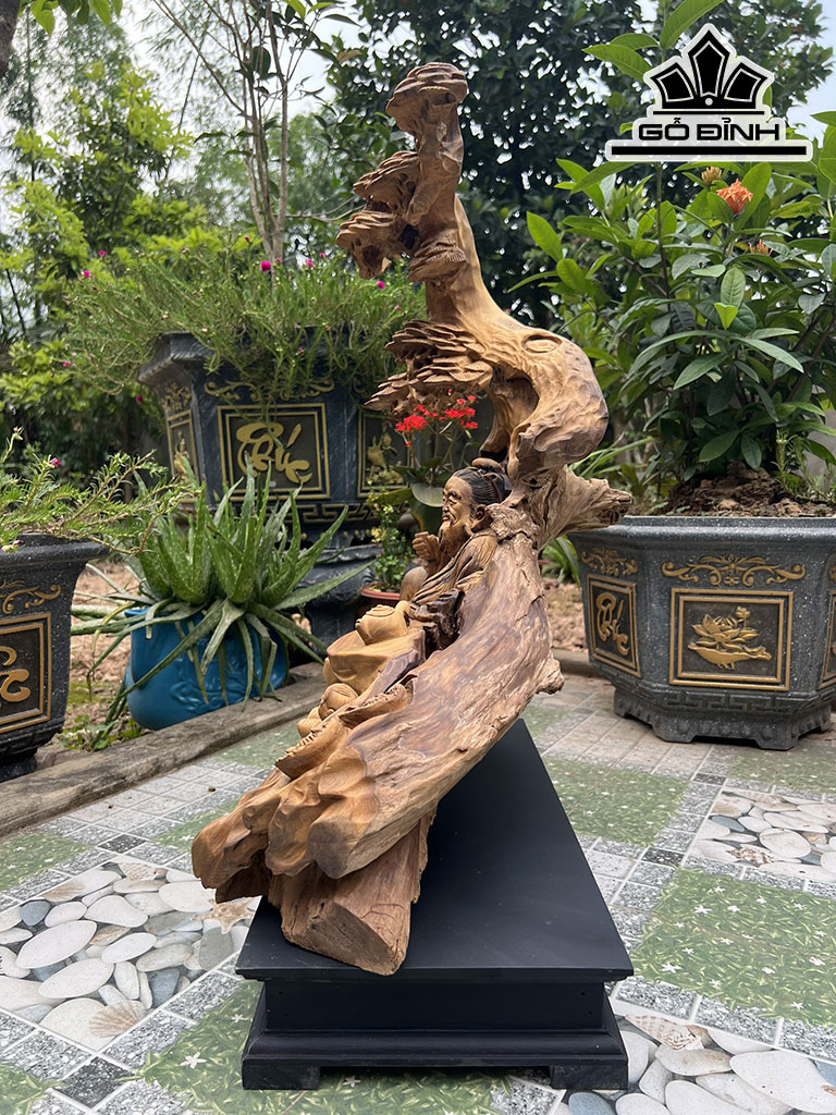 Tượng Thần Trà Gỗ Bách Xanh Cao 67 Ngang 60 Sâu 32 (cm)