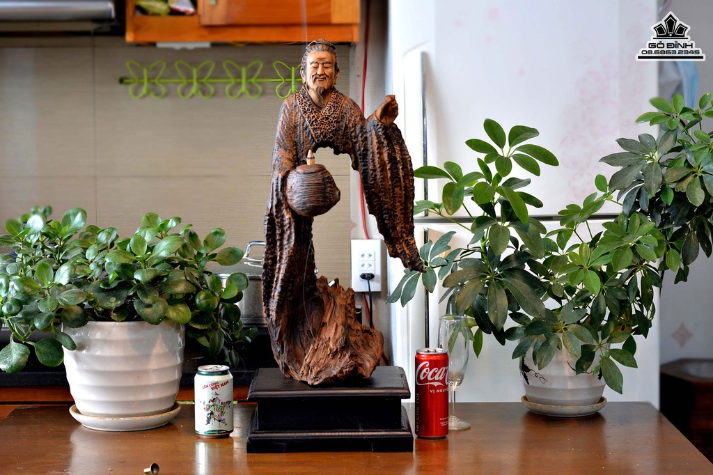 Tượng Thần Trà Gỗ Bách Xanh Cao 68 Ngang 25 Sâu 15 (cm)