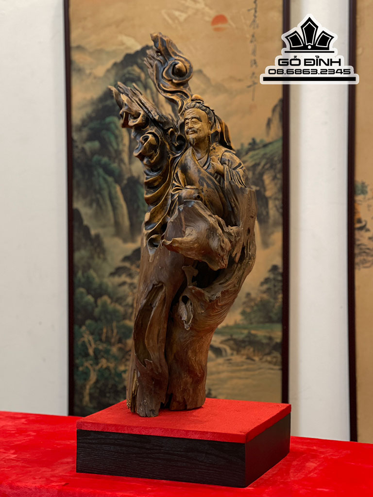 Tượng Thần Trà Gỗ Bách Xanh Cao 75 Ngang 30 Sâu 20 (cm)