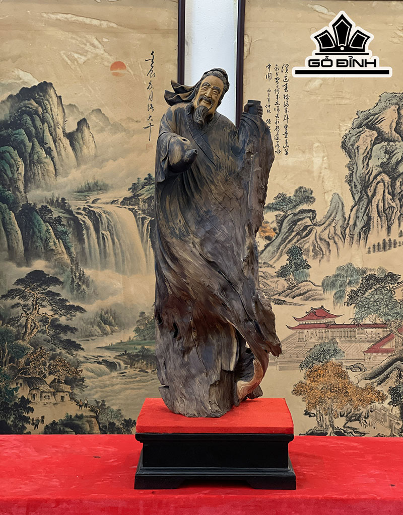 Tượng Thần Trà Gỗ Bách Xanh Cao 75 Ngang 33 Sâu 26 (cm)