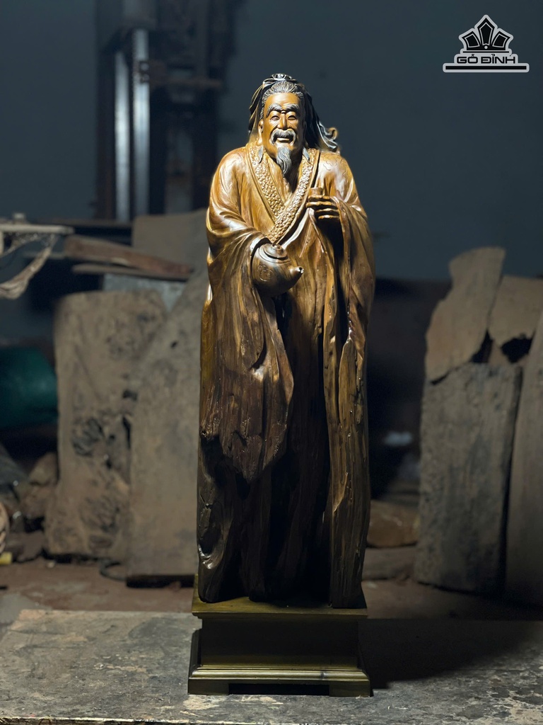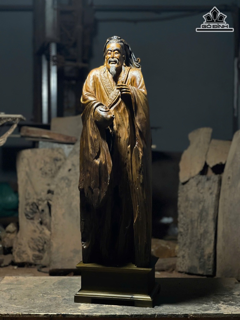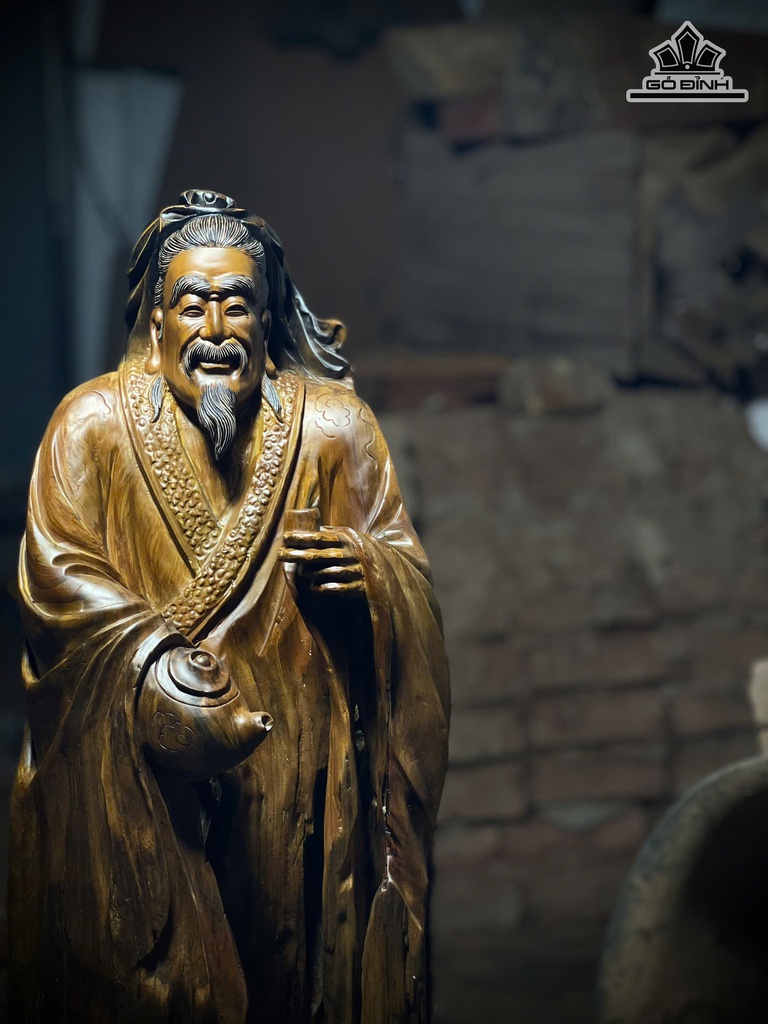 Tượng Thần Trà Gỗ Bách Xanh Cao 76 Ngang 21 Sâu 20 (cm)