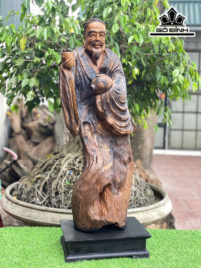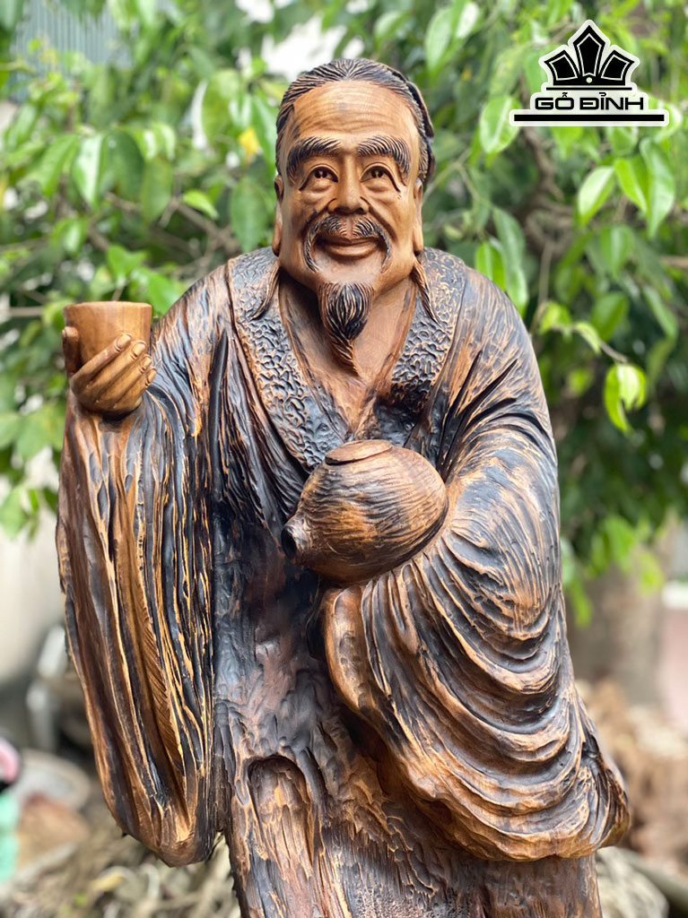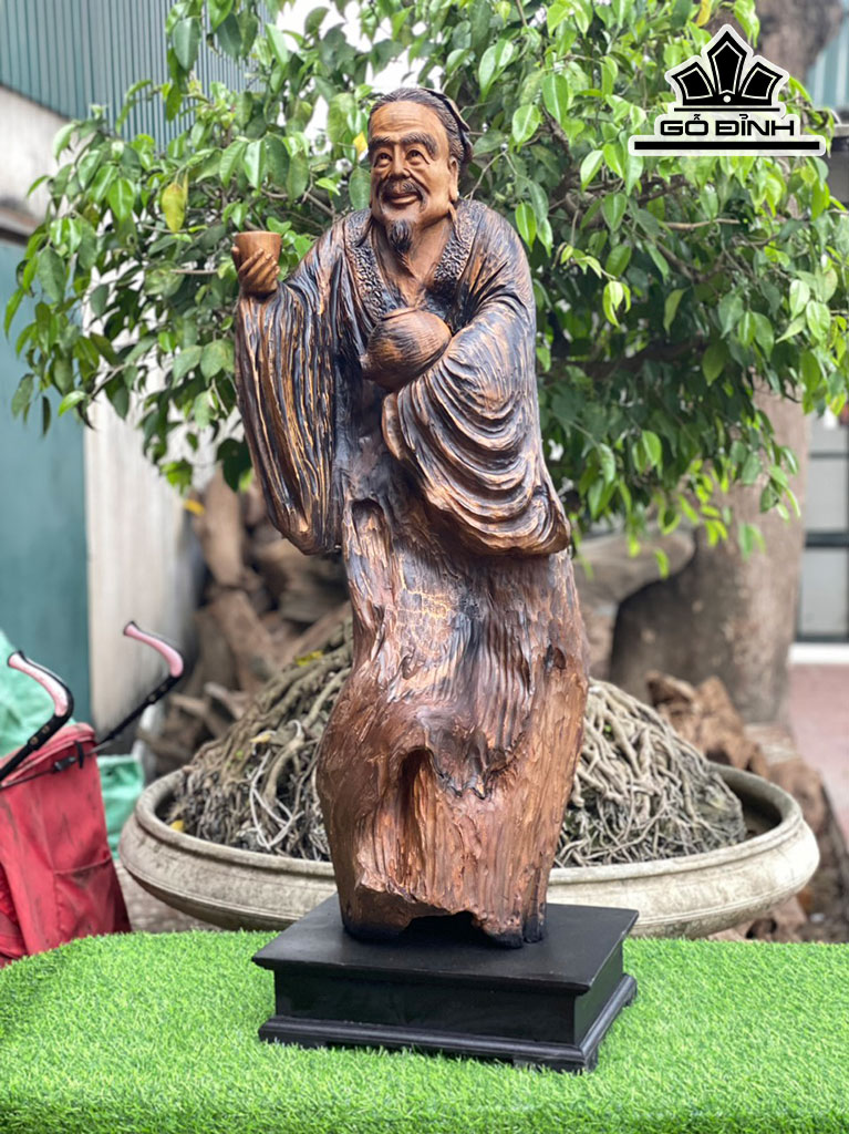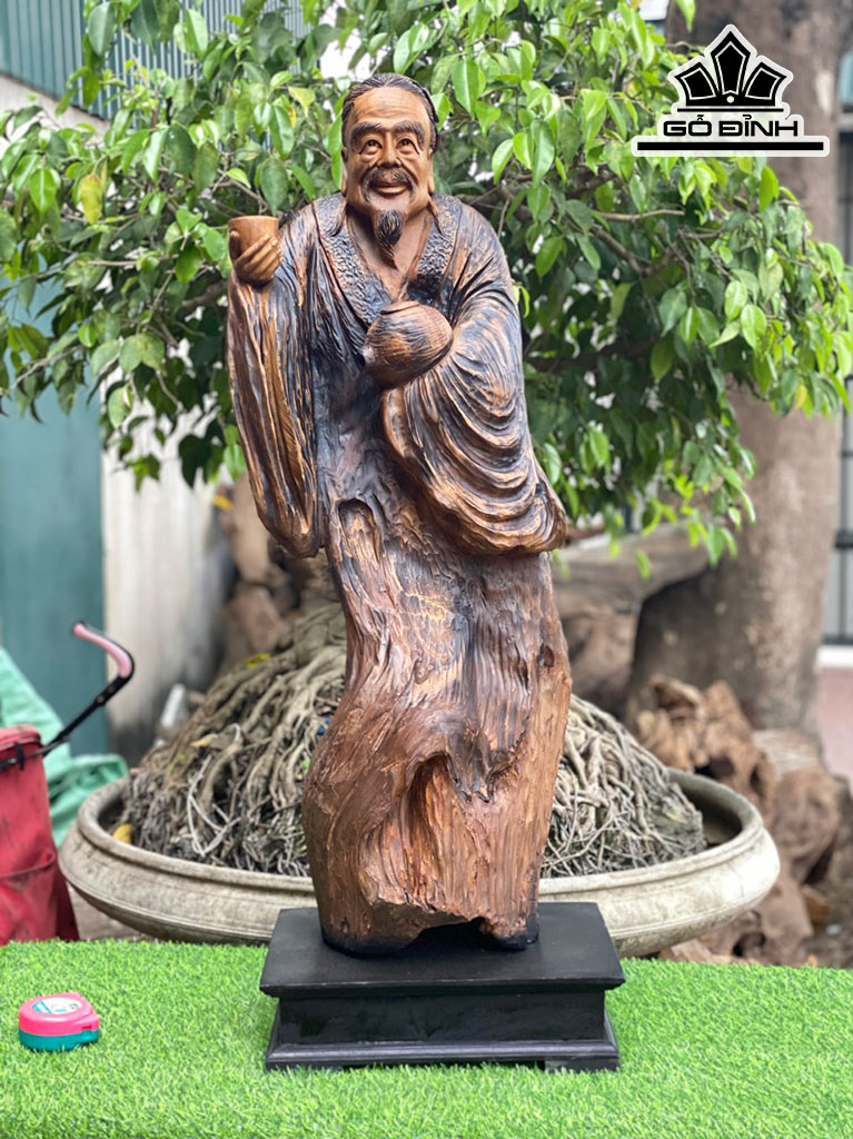 Tượng Thần Trà Gỗ Bách Xanh Cao 98 Ngang 32 Sâu 25 (cm)