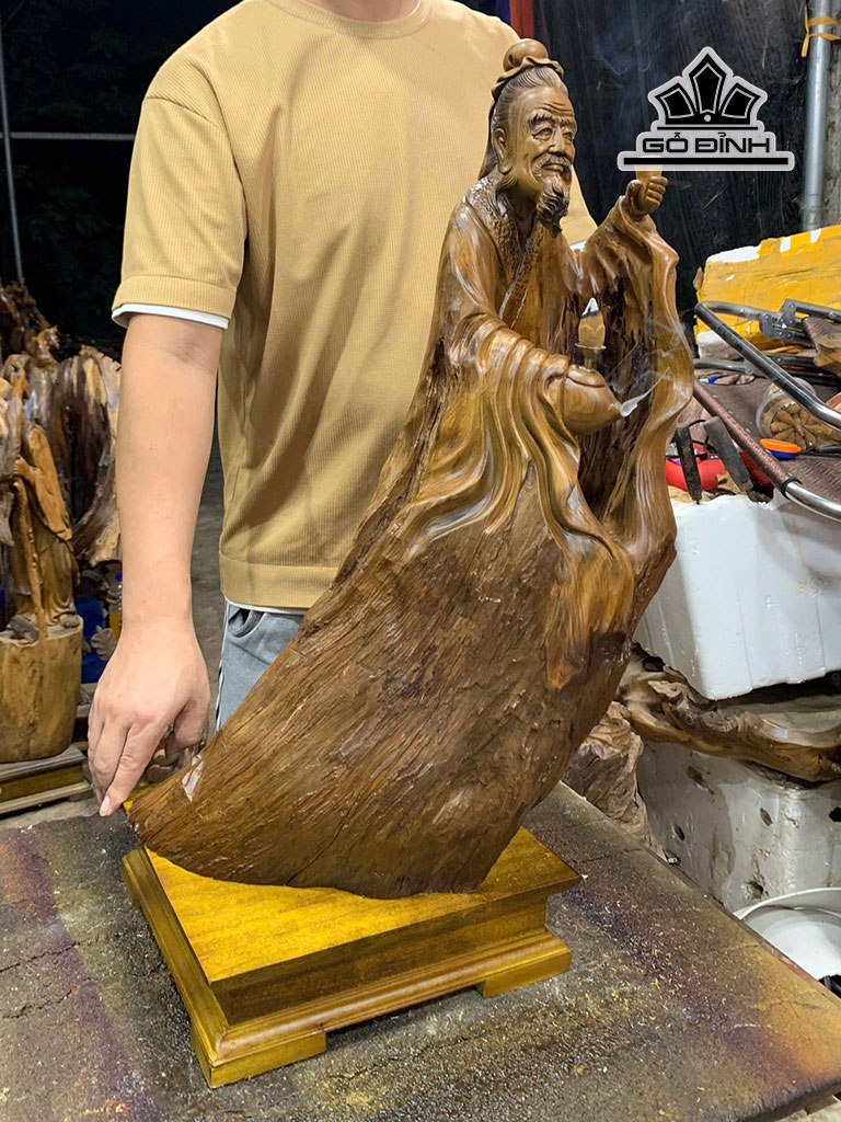 Tượng Thần Trà Gỗ Bách Xanh Cao Cả Kỷ 71 Riêng Tượng Cao 61 Ngang 40 Sâu 30 (cm)