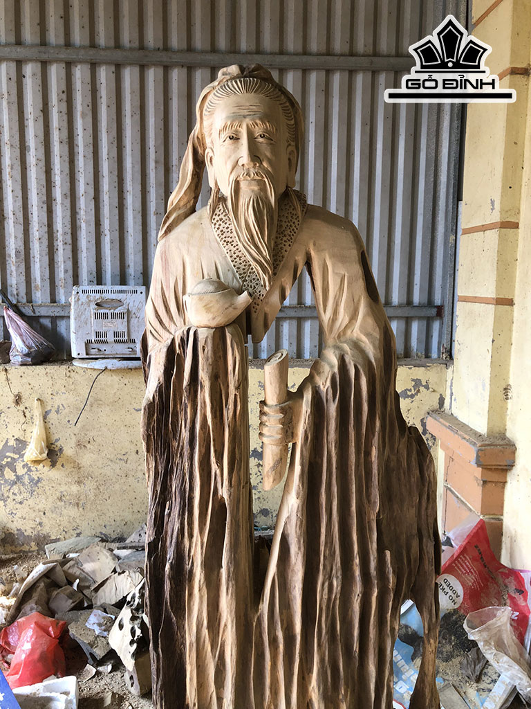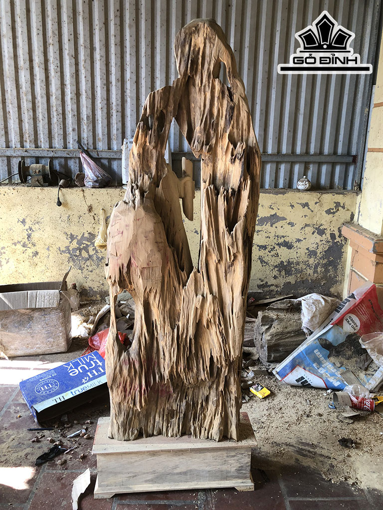 Tượng Thần Trà Gỗ Dổi Cao 145 Ngang 50 Sâu 20 (cm)