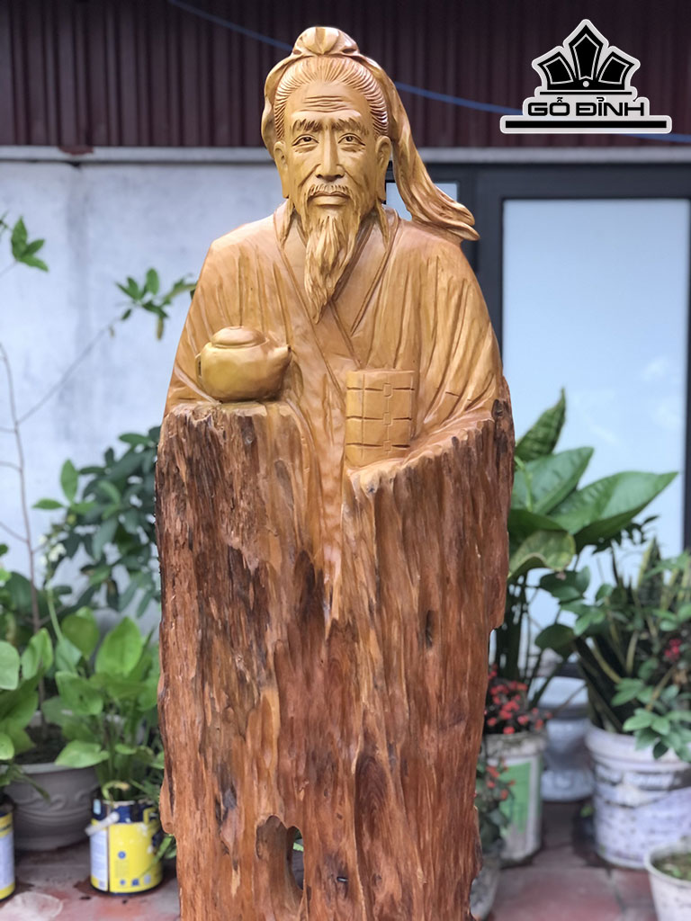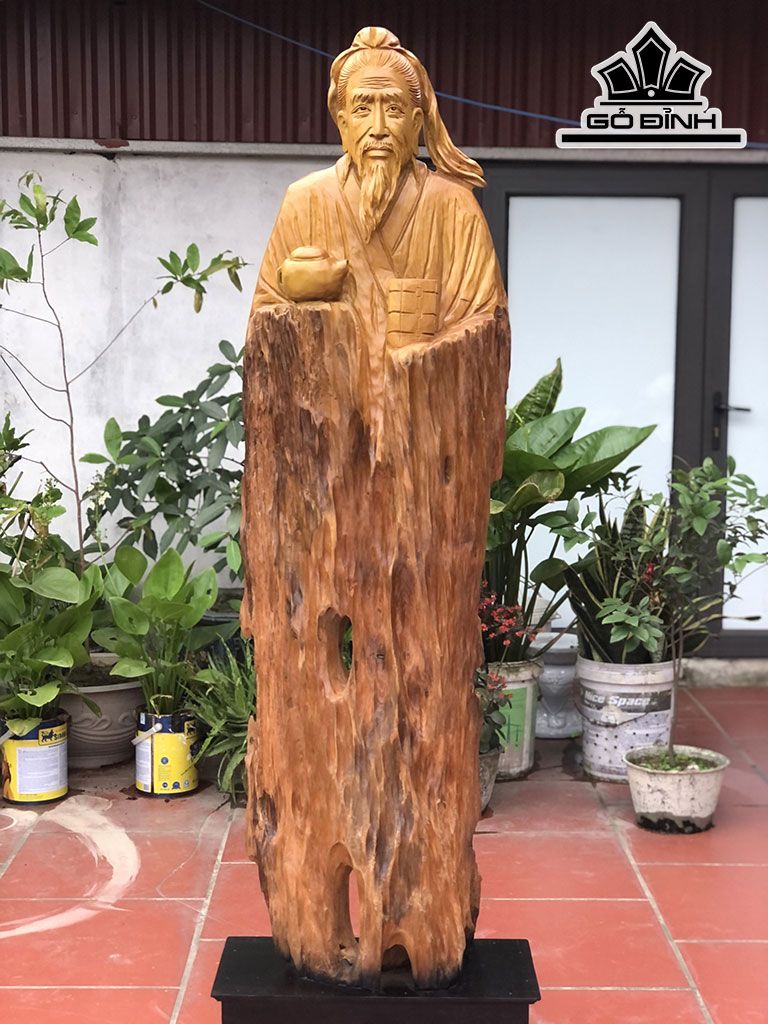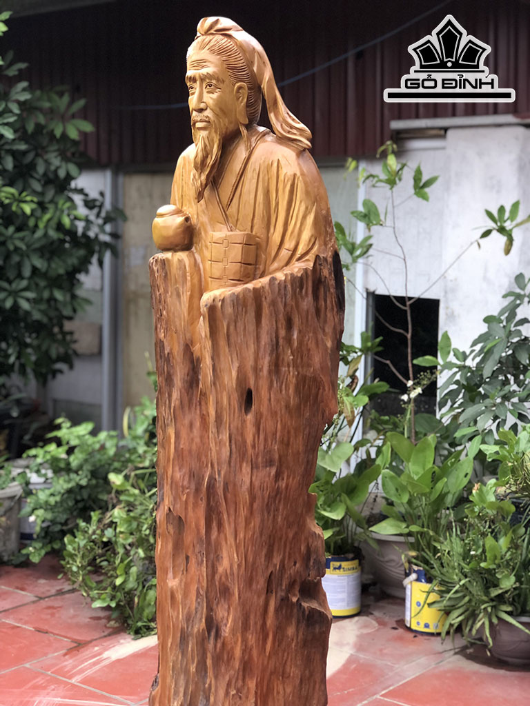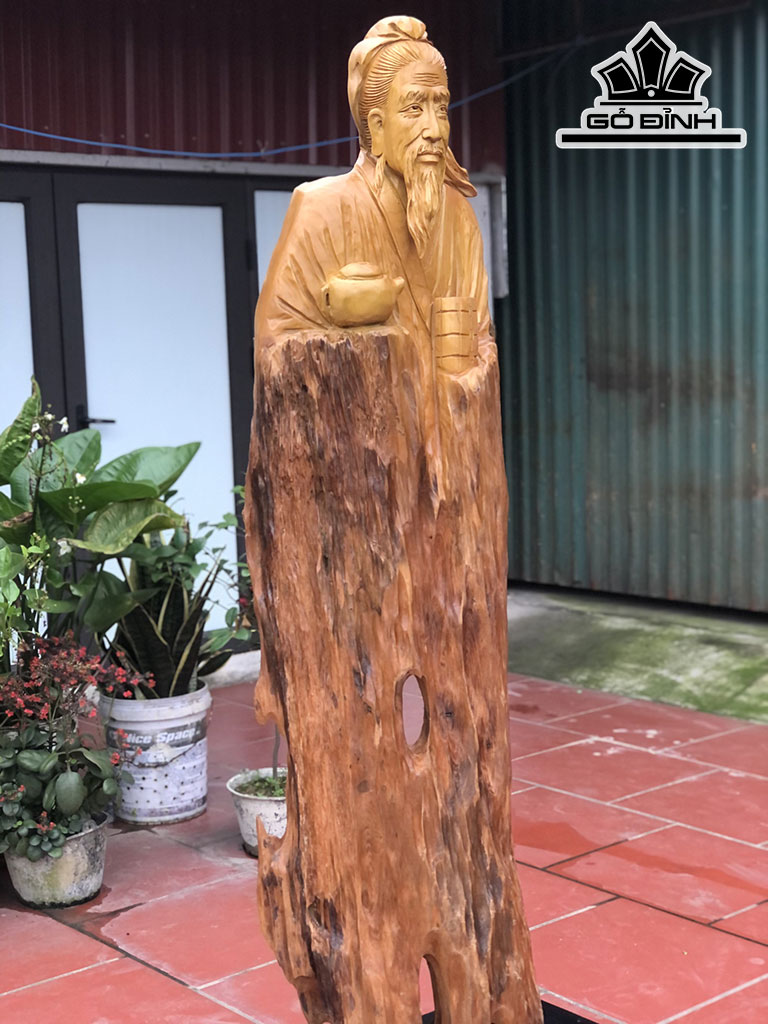 Tượng Thần Trà Gỗ Dổi Cao 160 Ngang 54 Sâu 26 Cao Cả Kỷ 180 (cm)