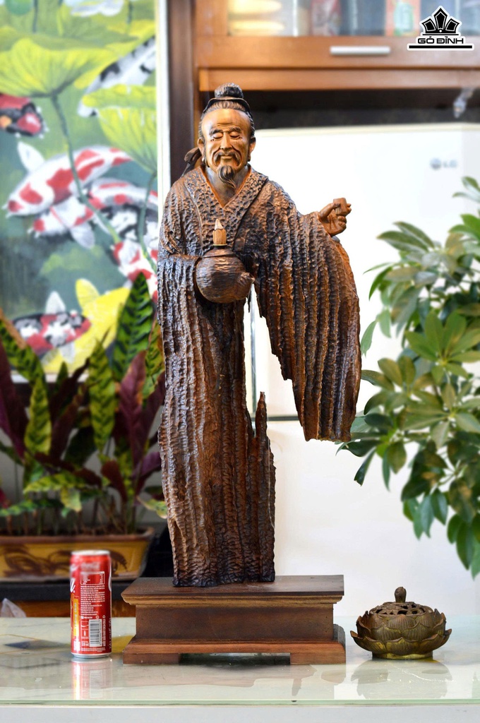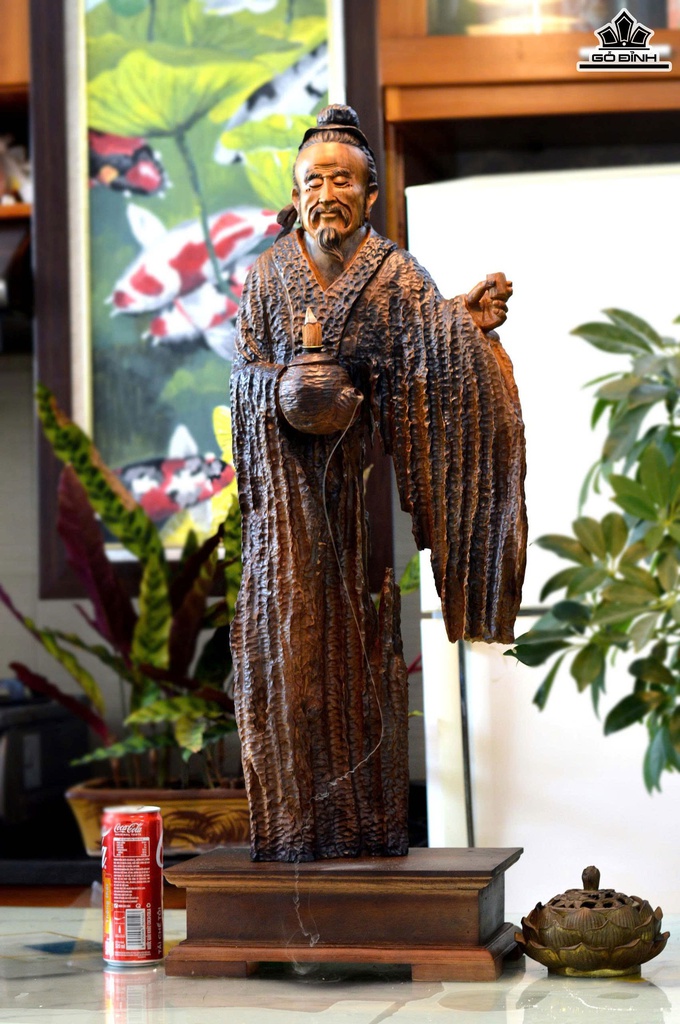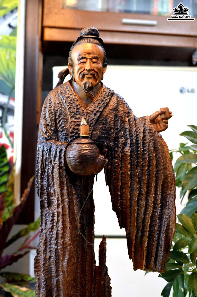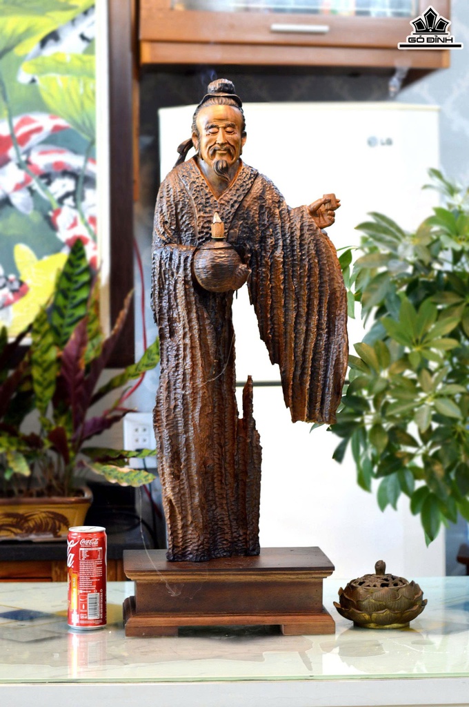 Tượng Thần Trà Gỗ Lũa Bách Xanh Cao Cả Kỷ 82 Ngang 28 Sâu 15 (cm)- Kỷ Cao 10 (cm)