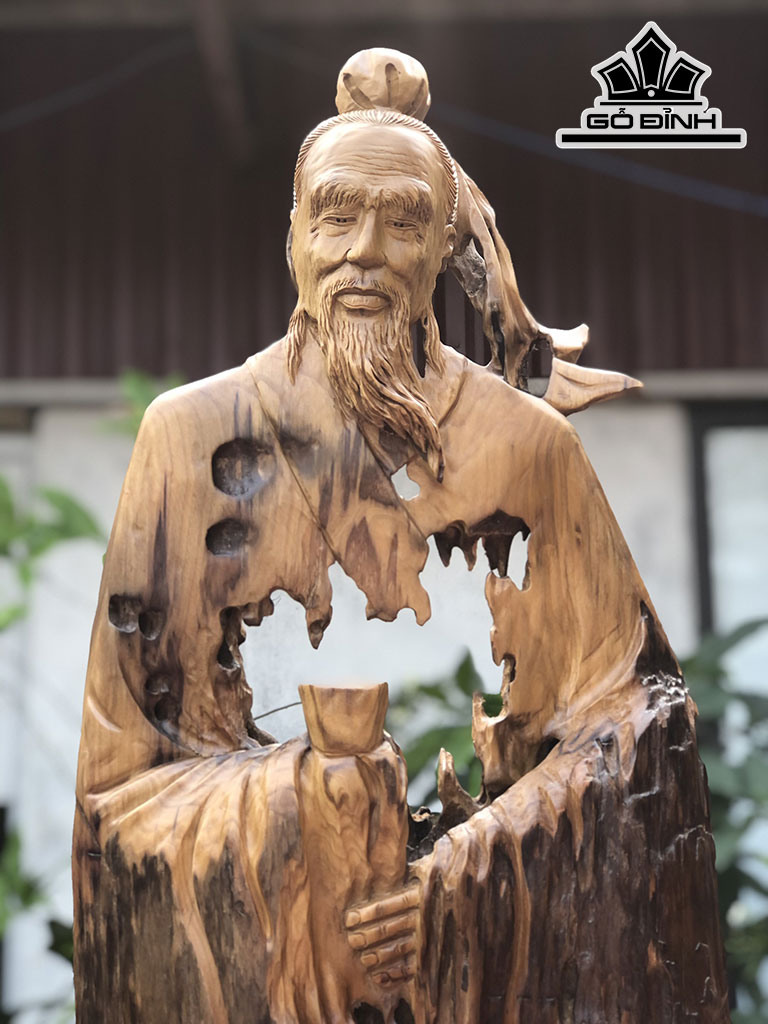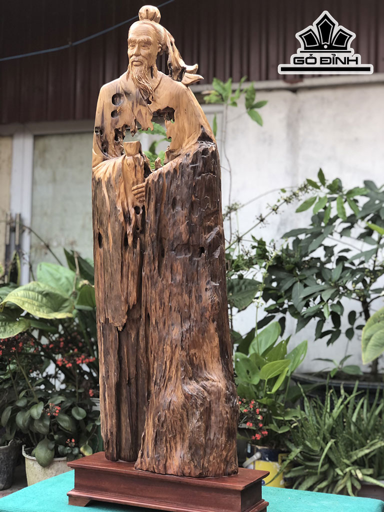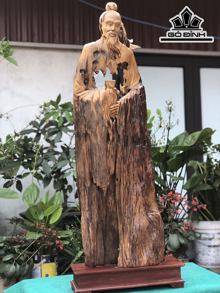Tượng Thần Trà Gỗ Lũa Dổi Cao 117 Ngang 38 Sâu 16 (cm)