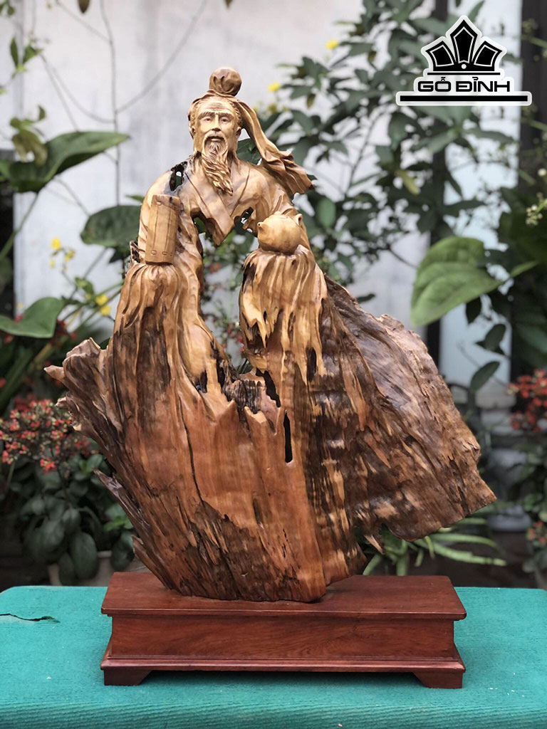 Tượng Thần Trà Gỗ Lũa Dổi Cao 76 Ngang 55 Sâu 15 (cm)