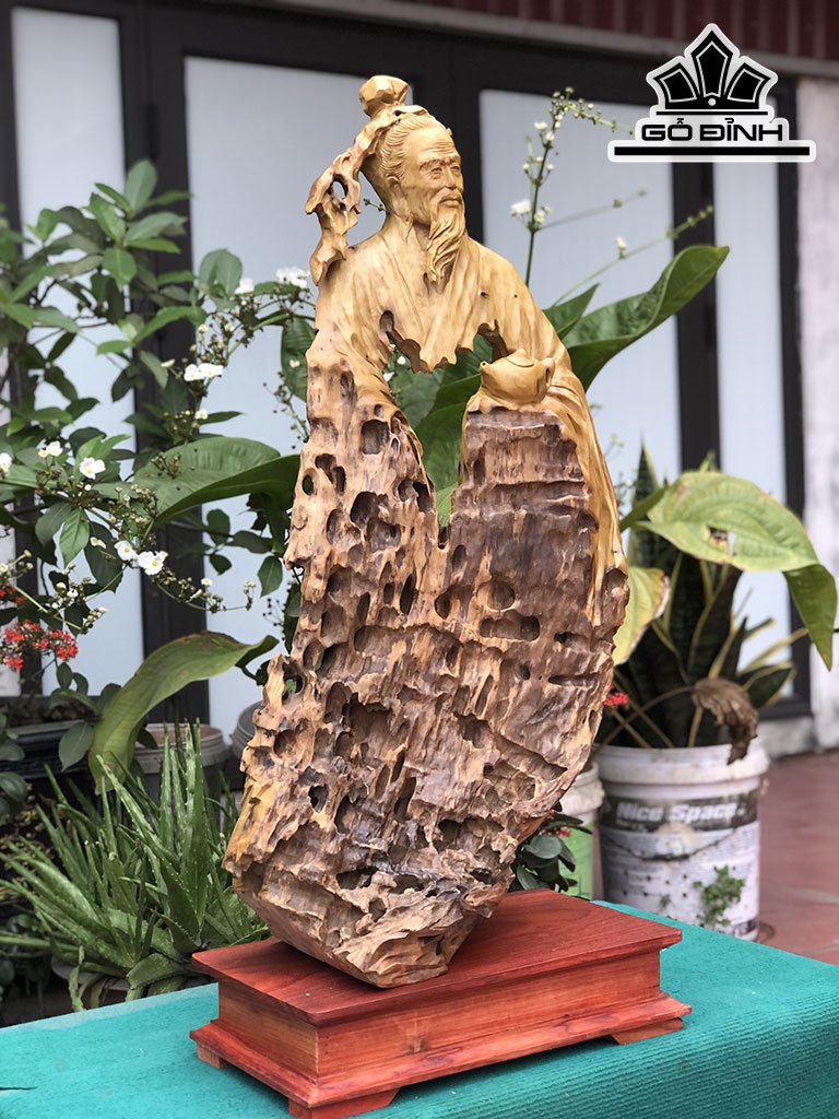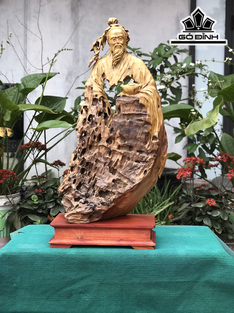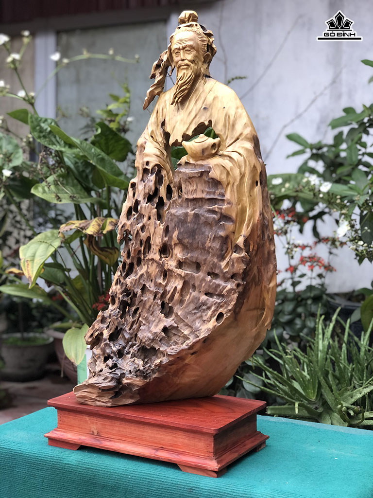 Tượng Thần Trà Gỗ Lũa Dổi Cao 89 Ngang 45 Sâu 20 (cm)