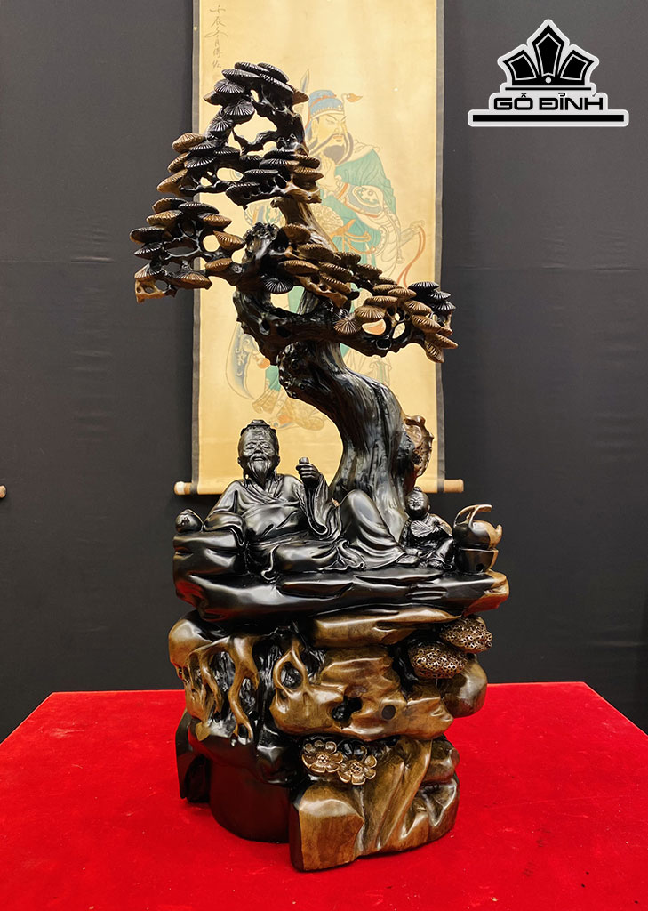 Tượng Thần Trà Gỗ Mun Cao 56 Ngang 24 Sâu 20 (cm)