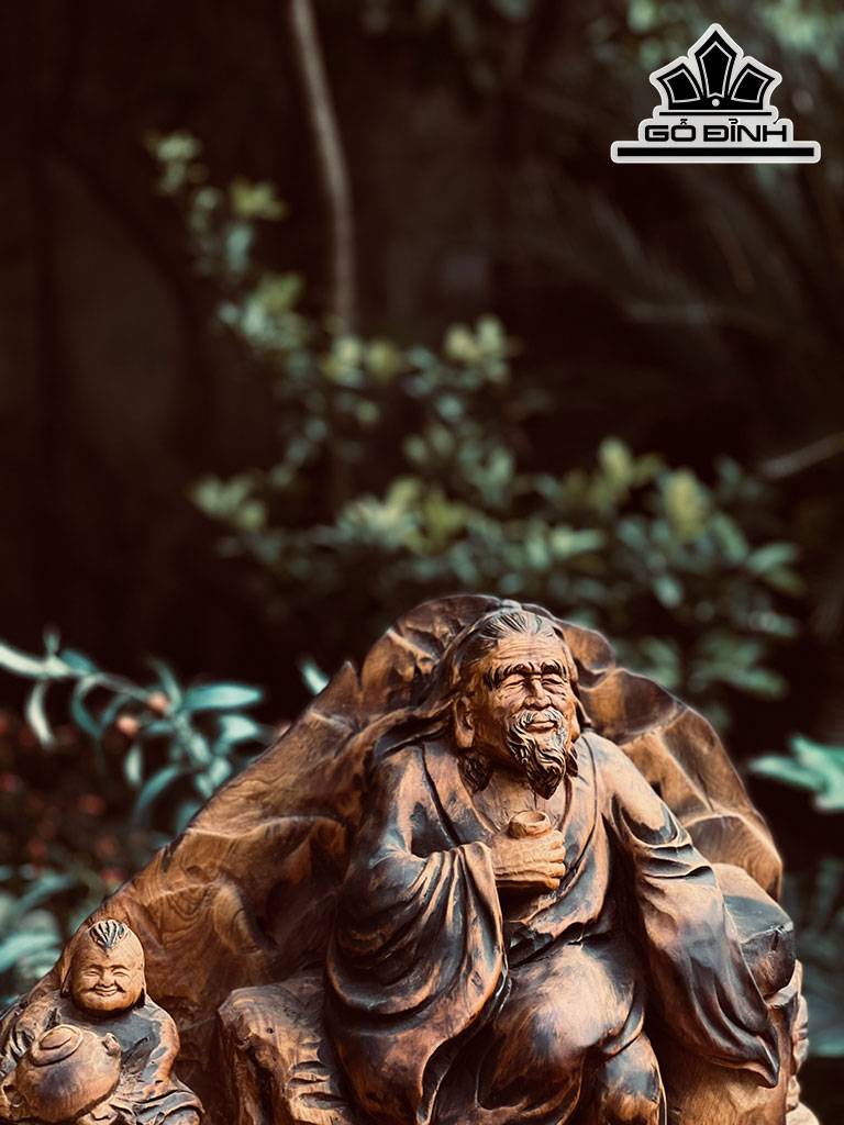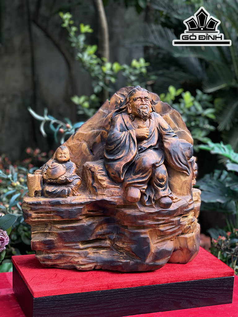 Tượng Thần Trà Gỗ Pơ Mu Cao 45 Ngang 48 Sâu 16 (cm)