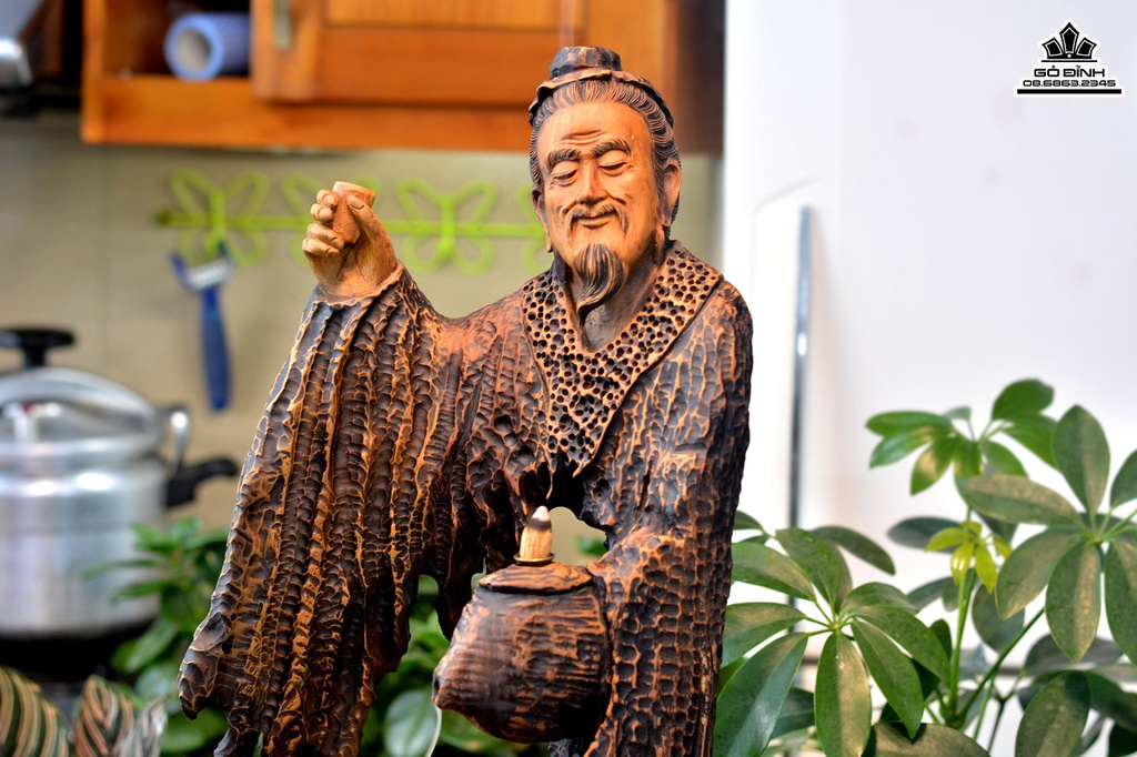 Tượng Thần Trà Lục Vũ Gỗ Bách Xanh