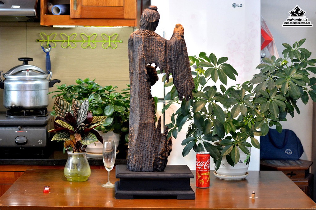 Tượng Thần Trà Lục Vũ Gỗ Bách Xanh Cao 75 Ngang 26 Sâu 15 (cm)