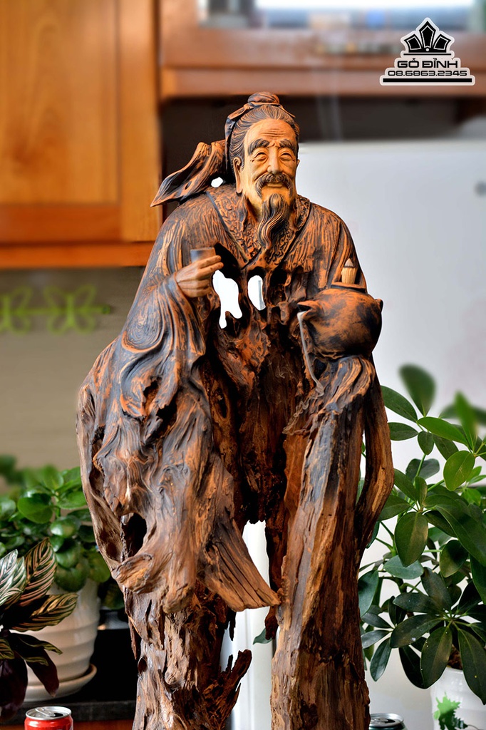 Tượng Thần Trà Lục Vũ Gỗ Bách Xanh