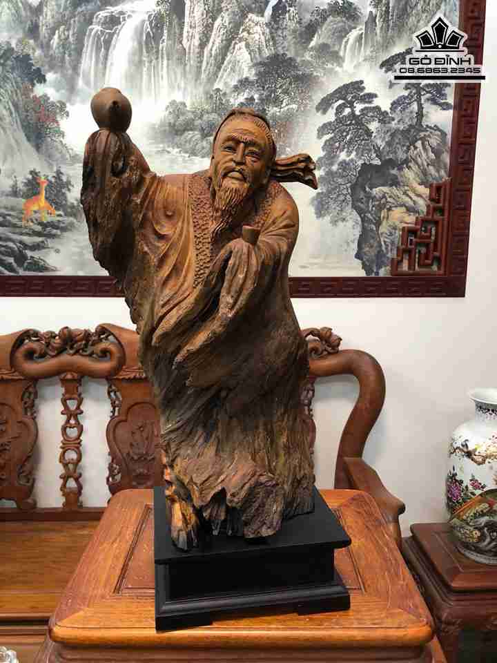 Tượng Thần Trà Lục Vũ Gỗ Lũa Bách Xanh Cao 69 Ngang 30 Sâu 36 (cm)