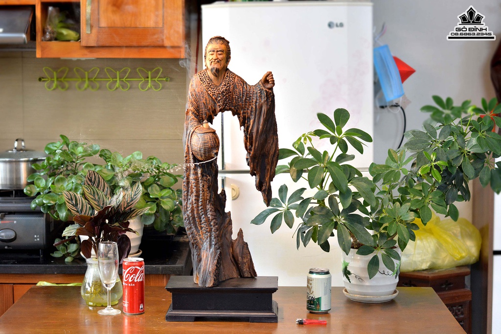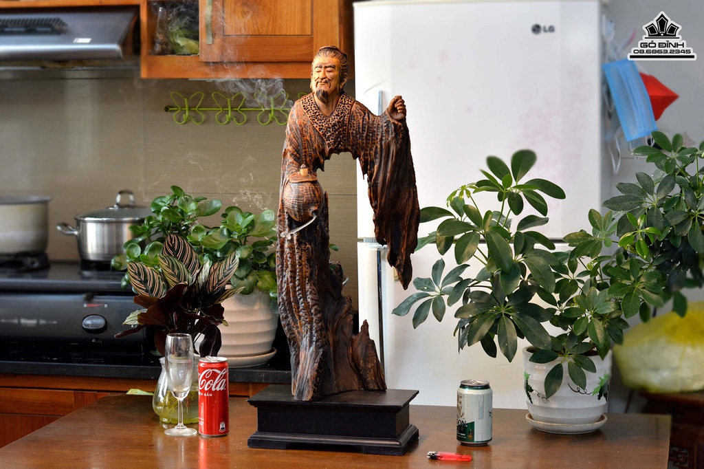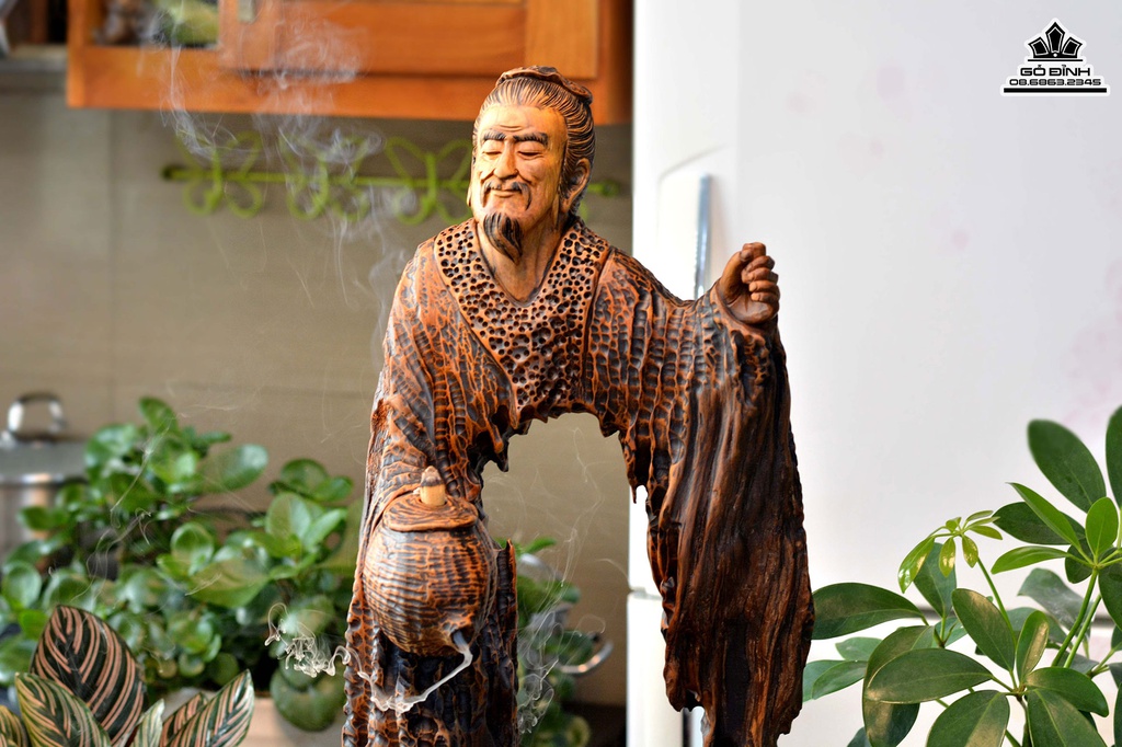 Tượng Thần Trà Lục Vũ Gỗ Lũa Bách Xanh