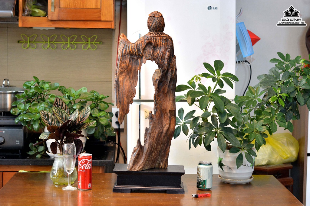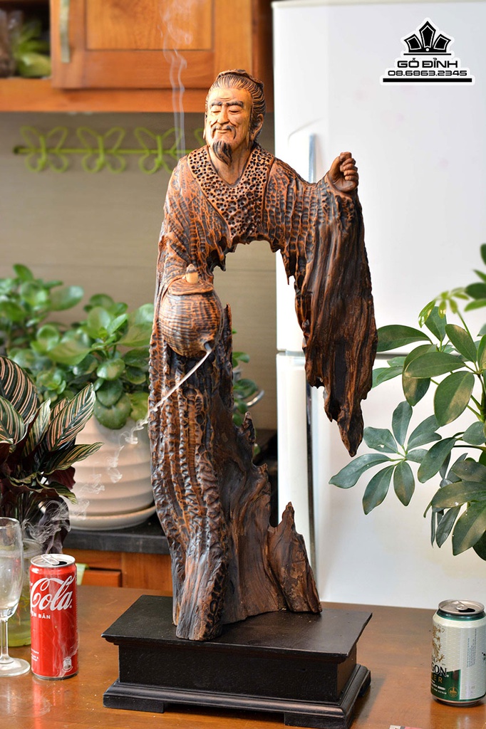 Tượng Thần Trà Lục Vũ Gỗ Lũa Bách Xanh Cao Cả Kỷ 75 Ngang 25 Sâu 15 (cm)