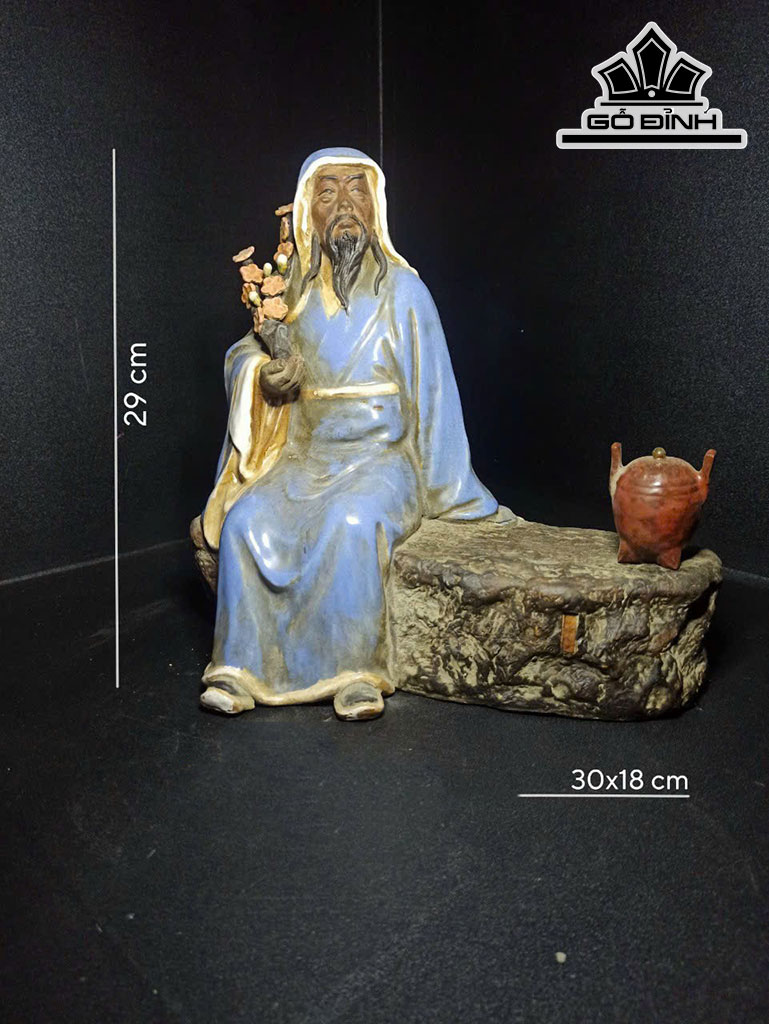 Tượng Thần Y Hoa Đà Gốm Phật Sơn Cao 29 Ngang 30 Sâu 18 (cm)