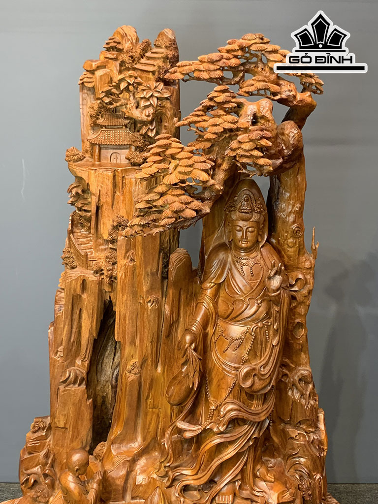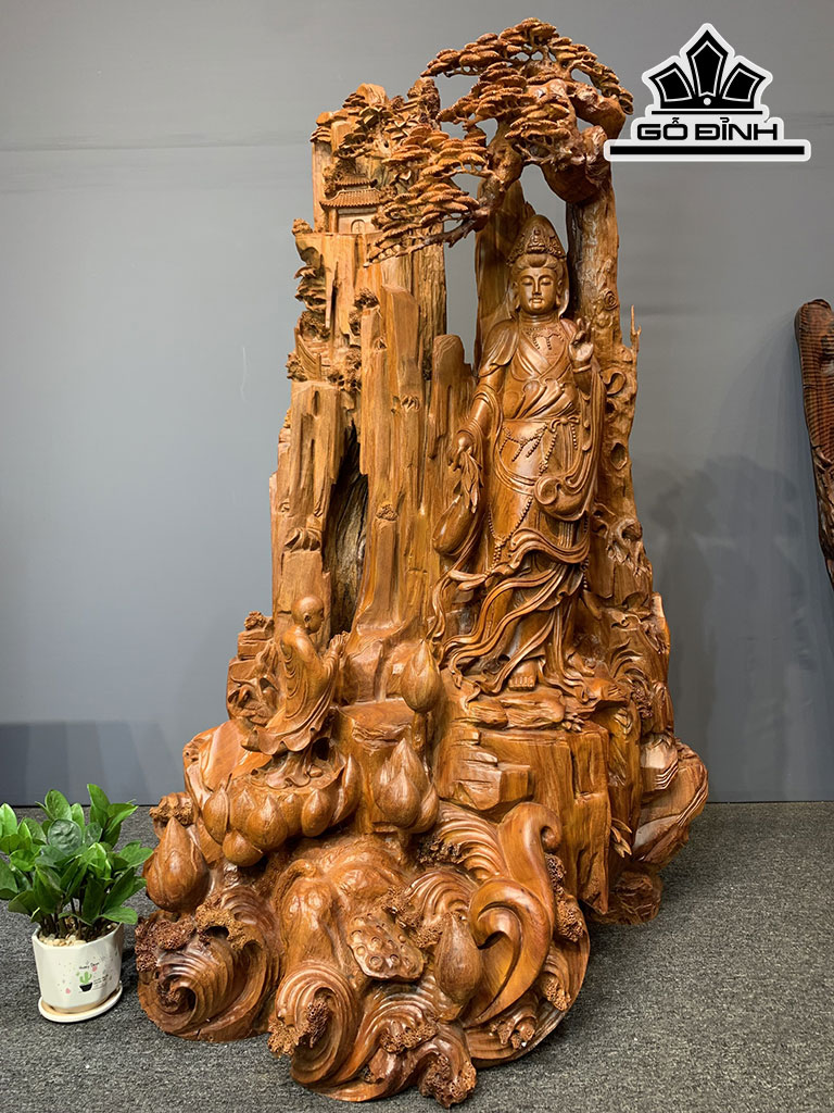 Tượng Thành Tâm Bái Phật Gỗ Hương Cao 128 Ngang 83 Sâu 68 (cm)