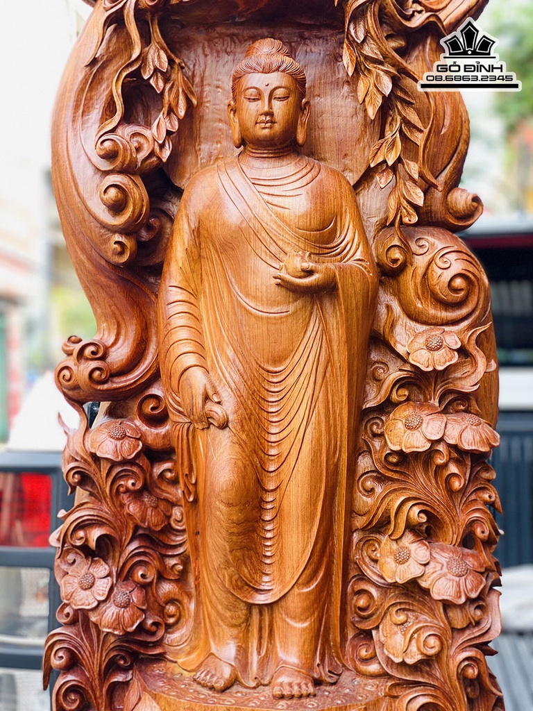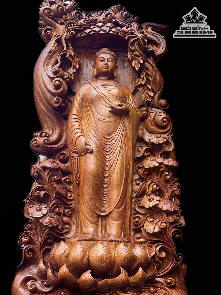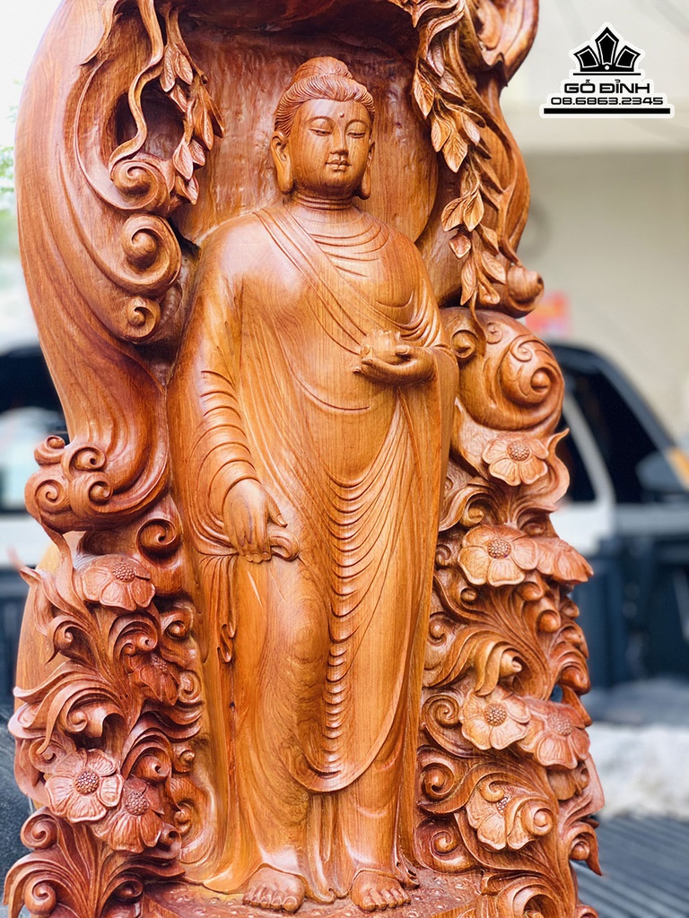 Tượng Thích Ca Mâu Ni Gỗ Hương Việt Cao 99 Ngang 45 Sâu 25 (cm)