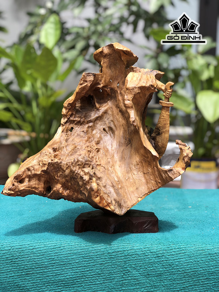 Tượng Thích Khách Gỗ Nu Lũa Cao 37 Ngang 35 Sâu 19 (cm)