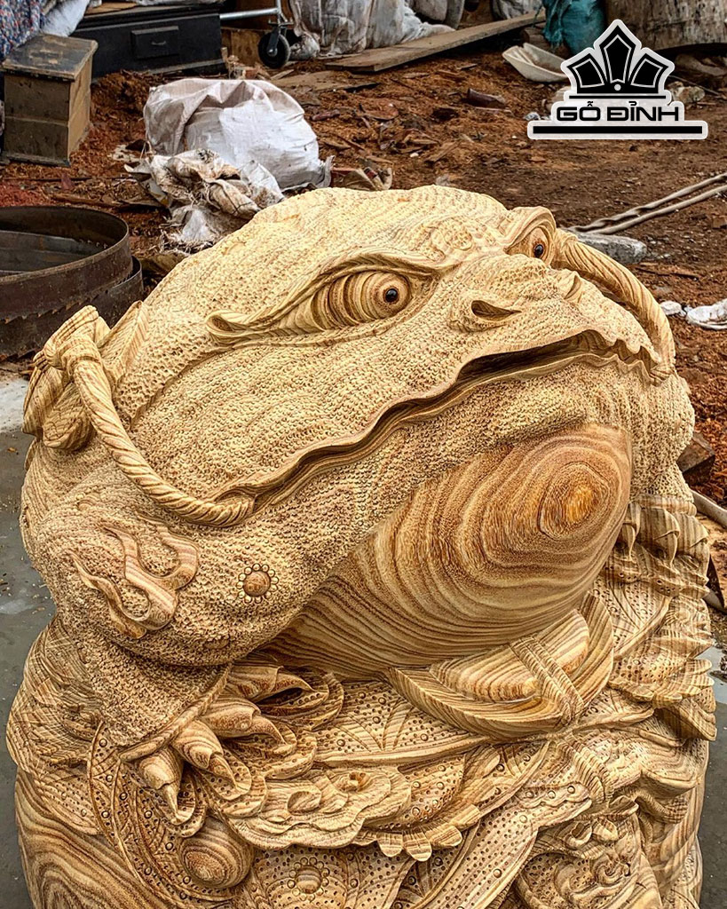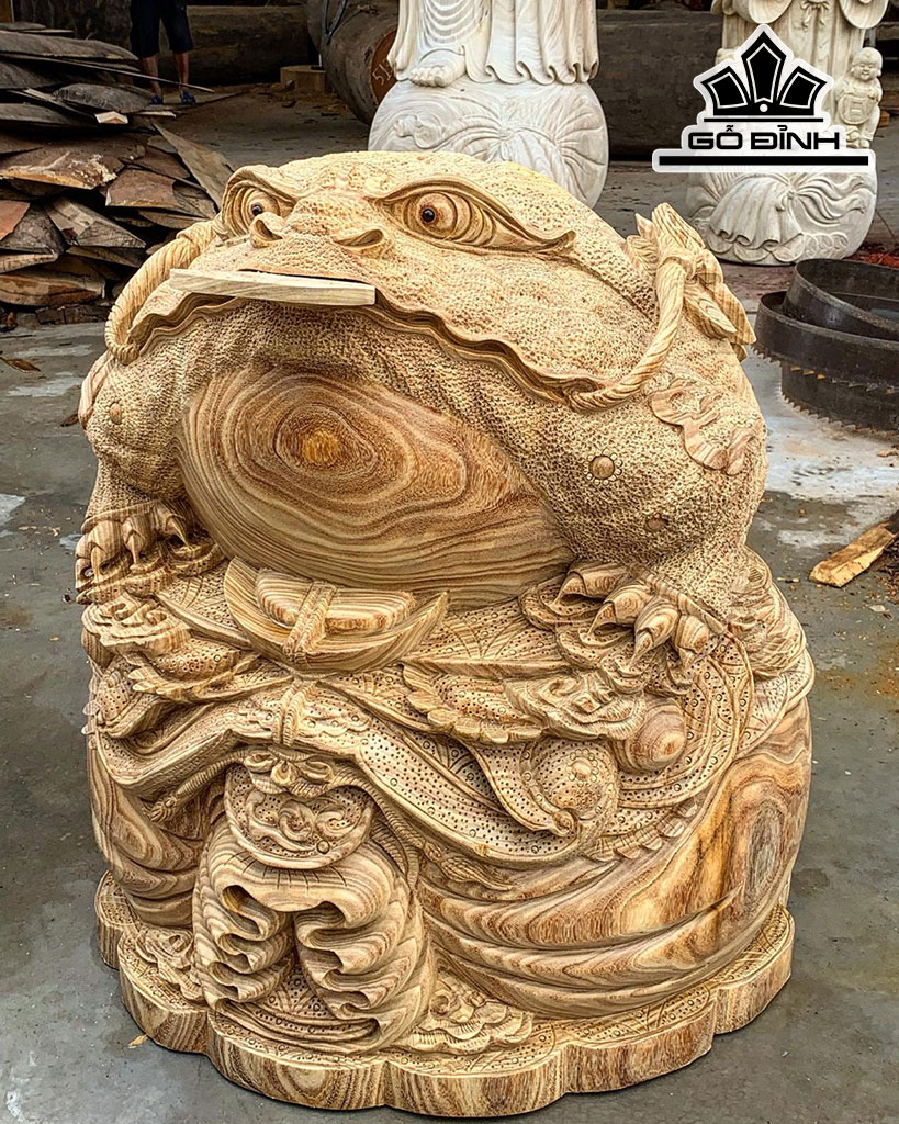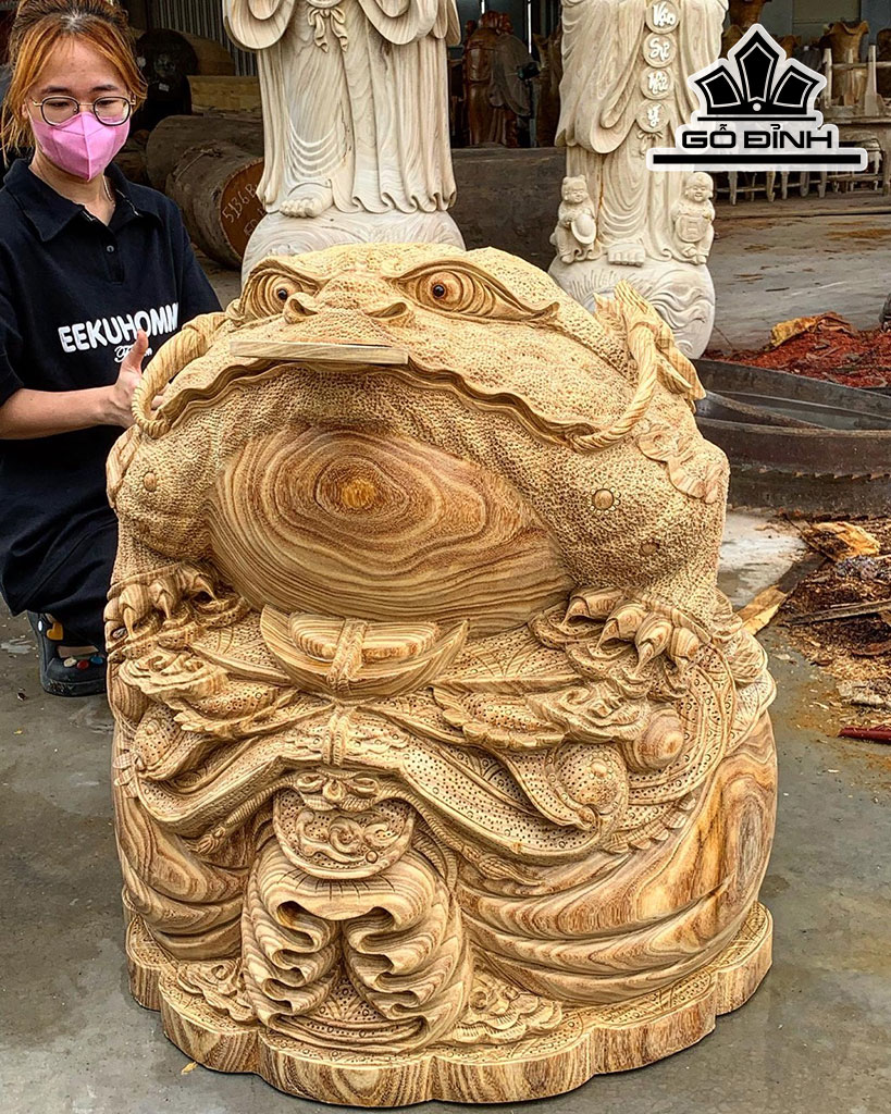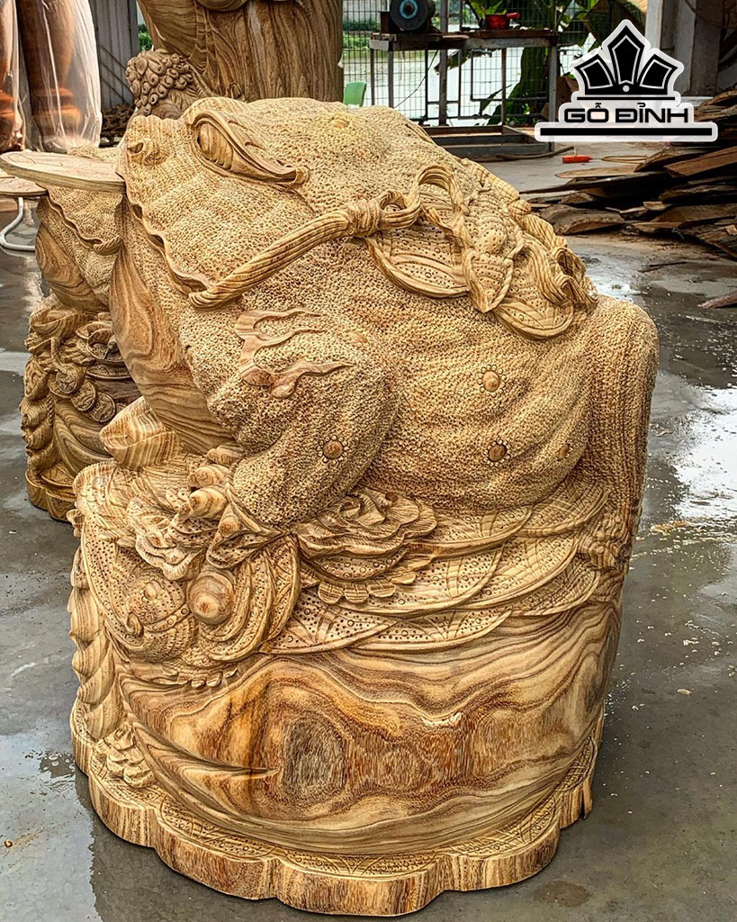 Tượng Thiềm Thừ Gỗ Cẩm Vàng Cao 75 Đường Kính 65 (cm)