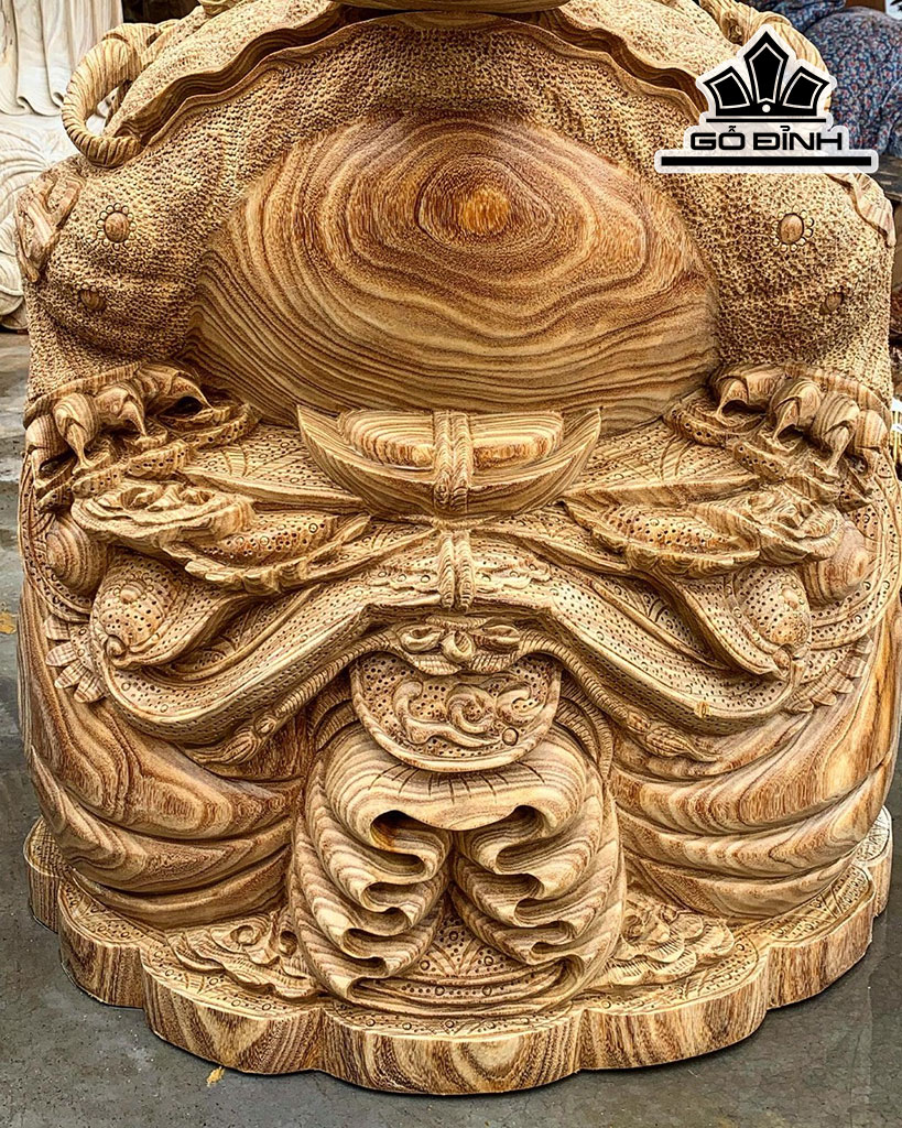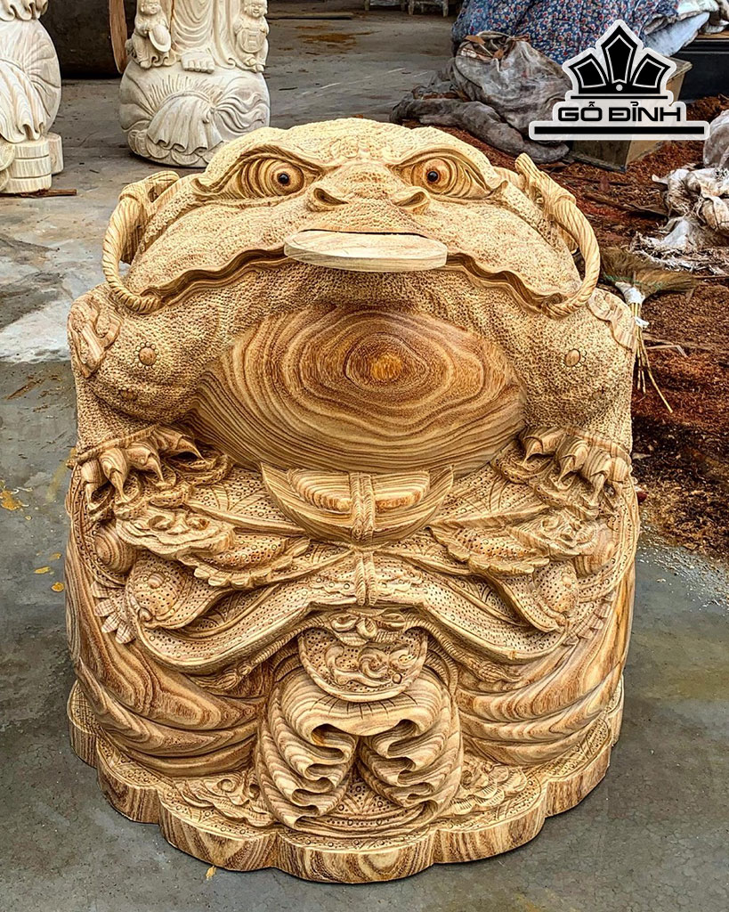 Tượng Thiềm Thừ Gỗ Cẩm Vàng Cao 75 Đường Kính 65 (cm)