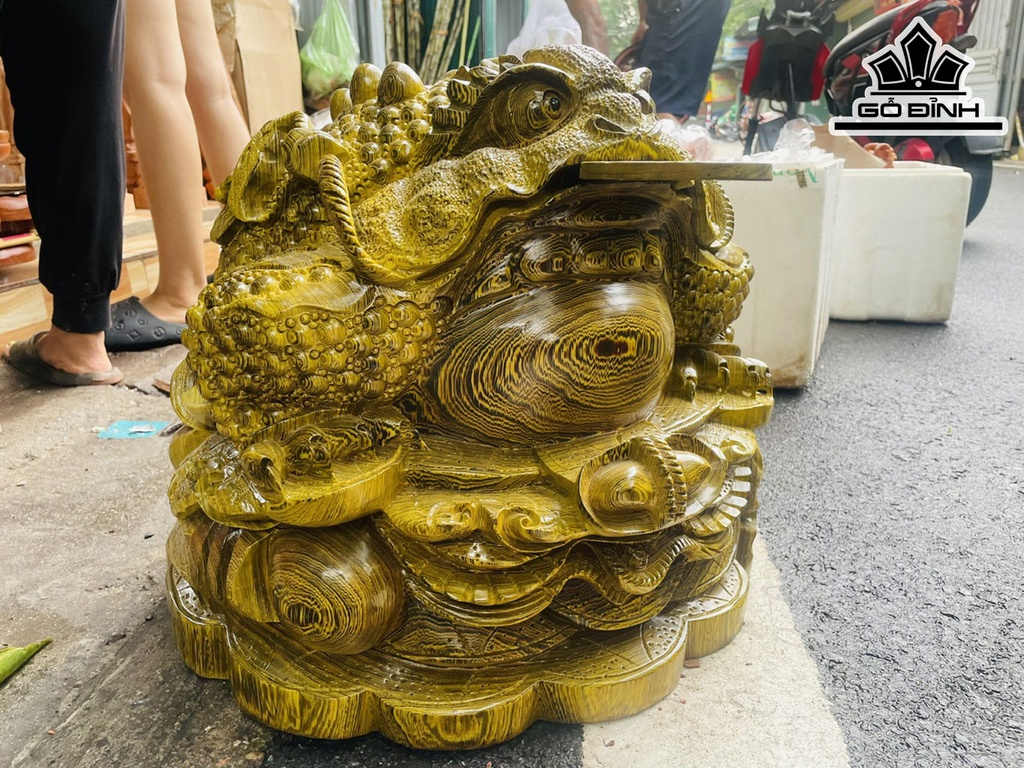Tượng Thiềm Thừ Gỗ Mun Đuôi Công Cao 43 Ngang 43 Sâu 28 (cm)