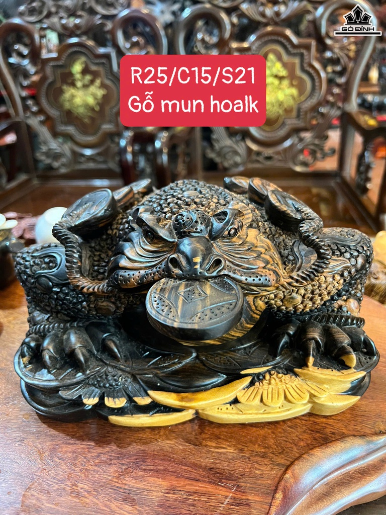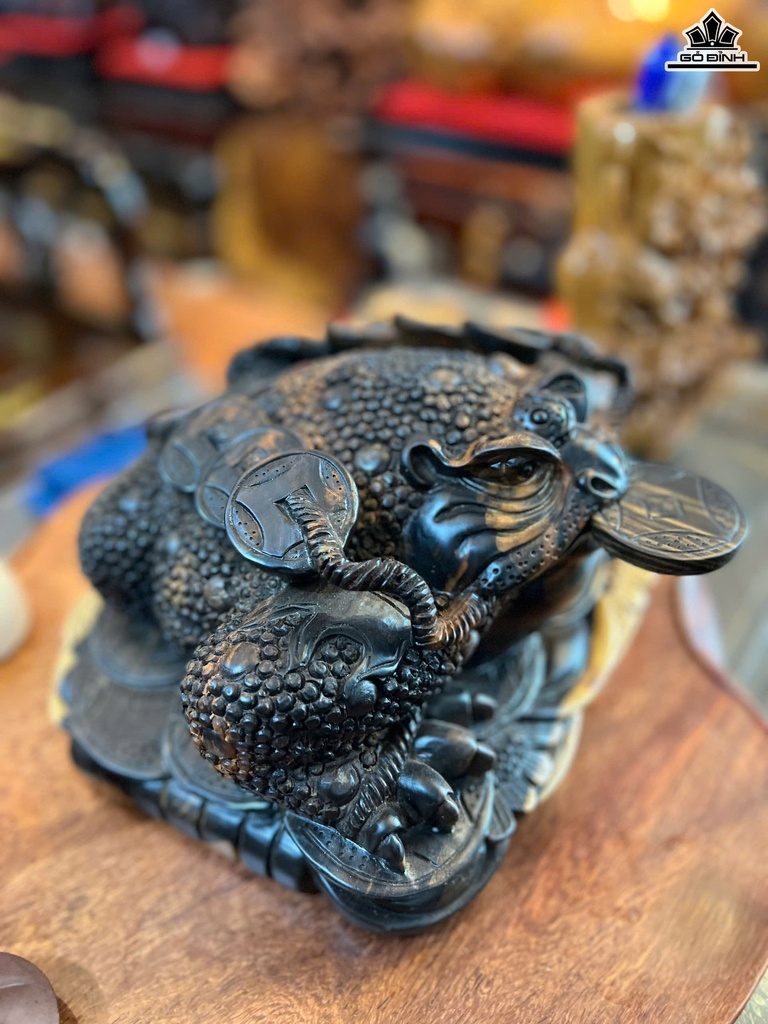 Tượng Thiềm Thừ Gỗ Mun Hoa Cao 15 Ngang 25 Sâu 21 (cm)