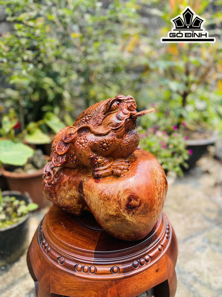 Tượng Thiềm Thừ Gỗ Nu Hương Cao 31 Ngang 29 Sâu 30 (cm)