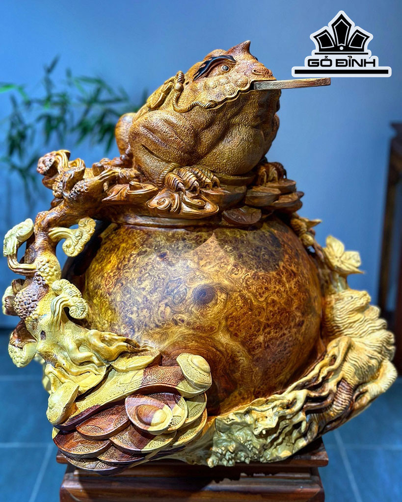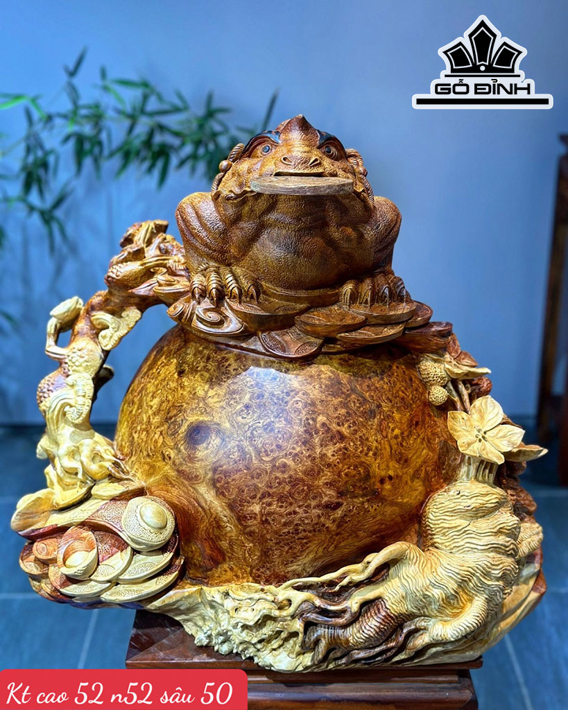 Tượng Thiềm Thừ Gỗ Nu Hương Cao 52 Ngang 52 Sâu 50 (cm)