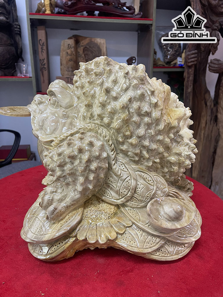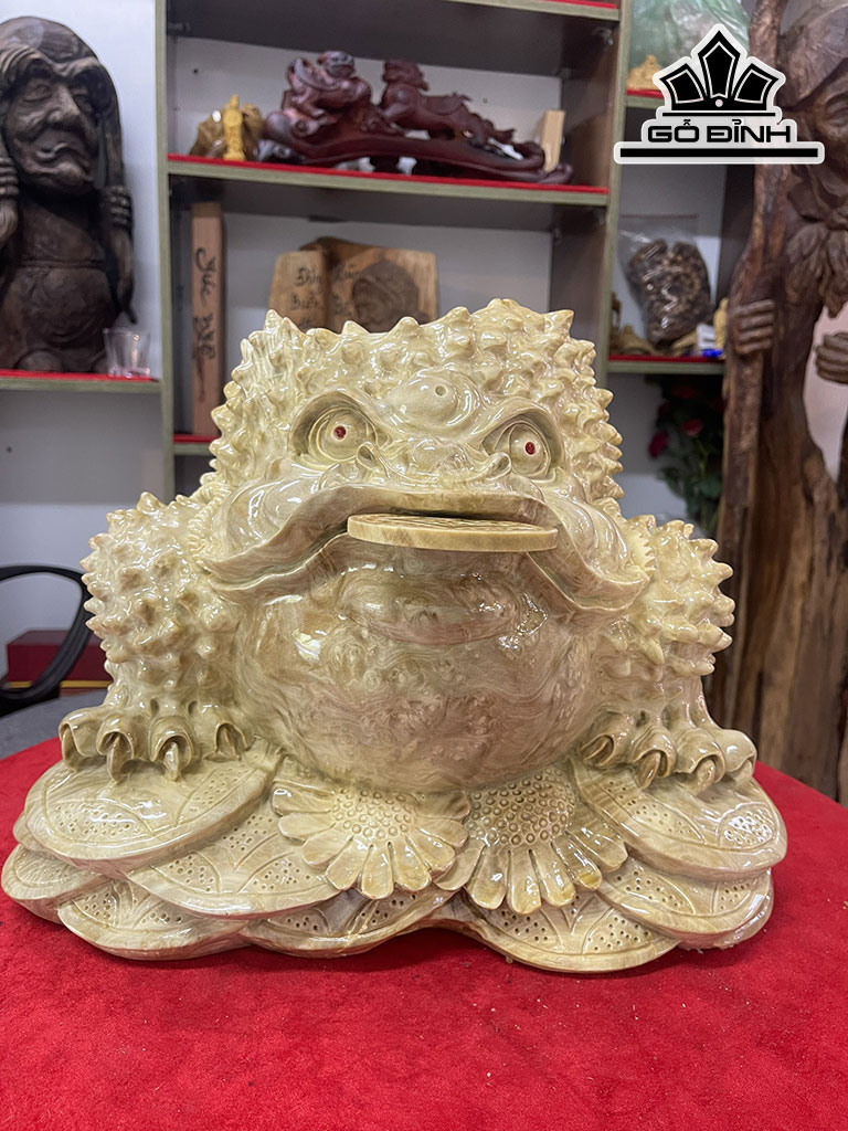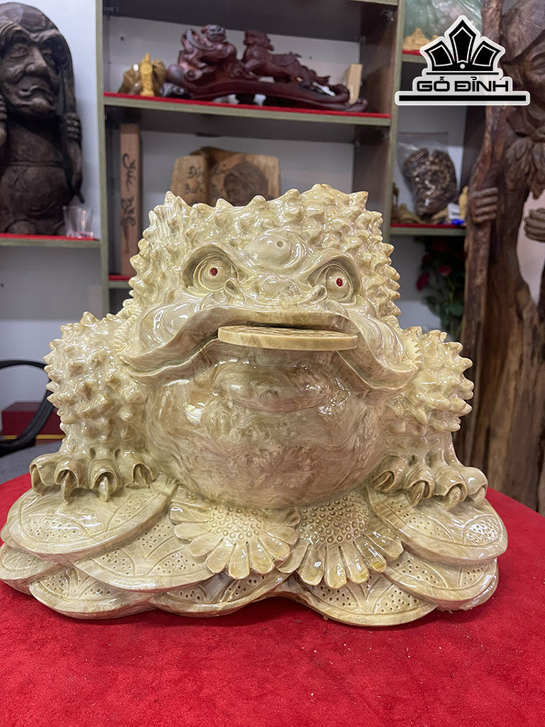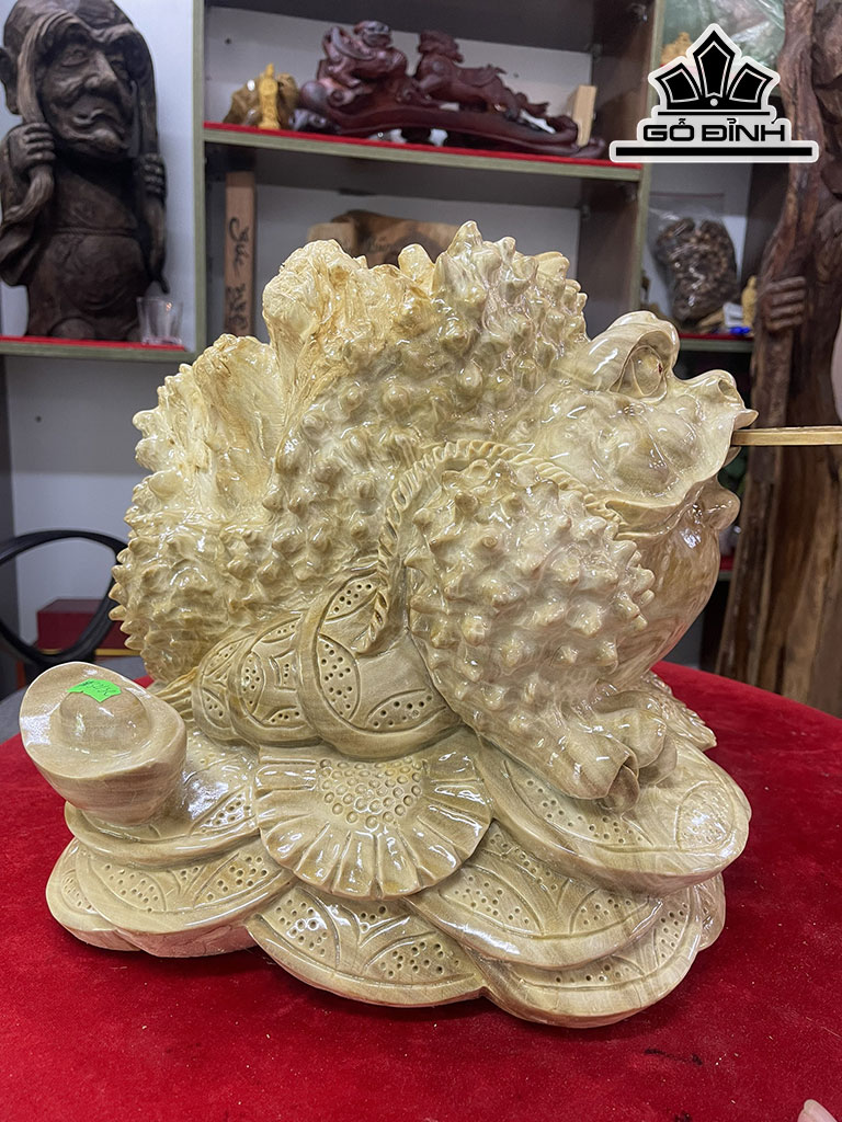 Tượng Thiềm Thừ Gỗ Nu Nghiến Cao 40 Ngang 32 Sâu 32 (cm)