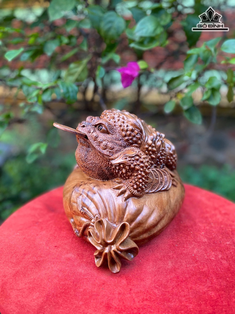 Tượng Thiềm Thừ Gỗ Nu Ngọc Am Cao 18 Ngang 20 Sâu 21 (cm)