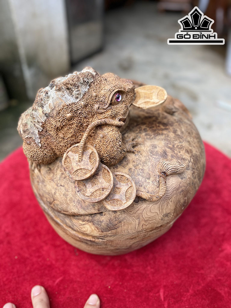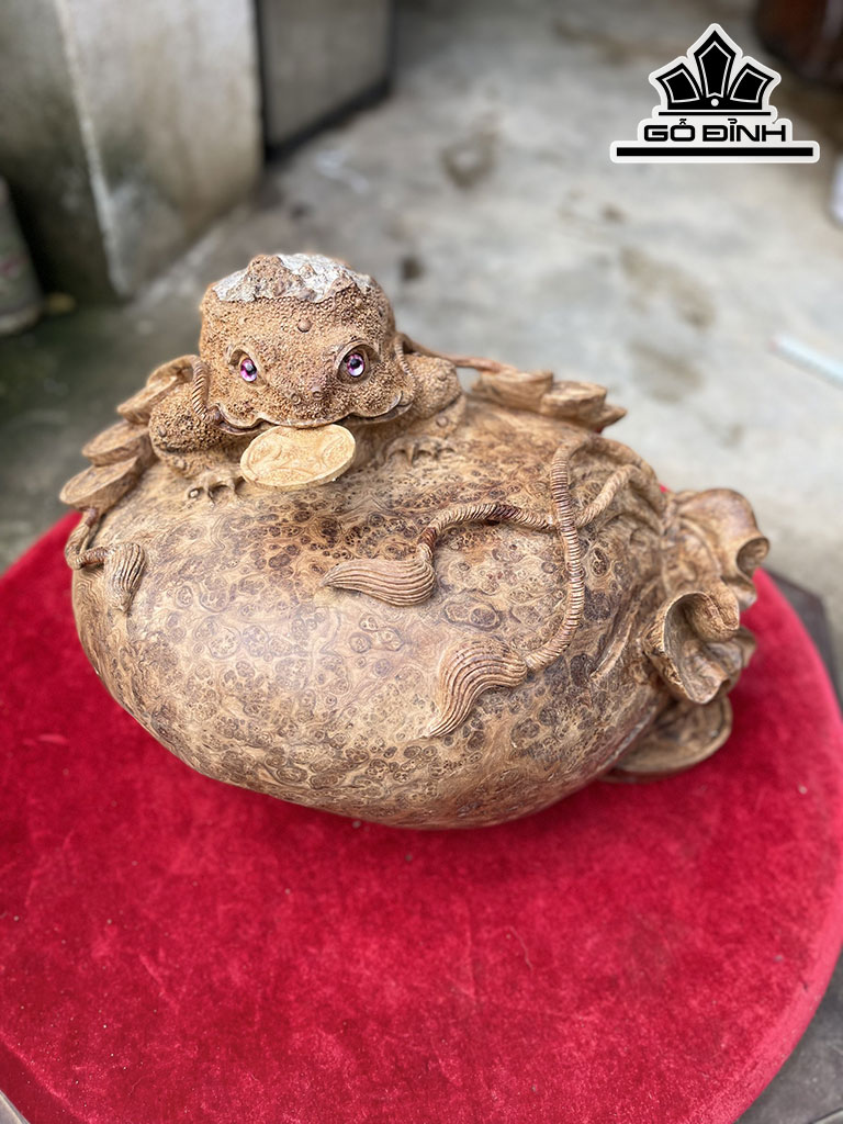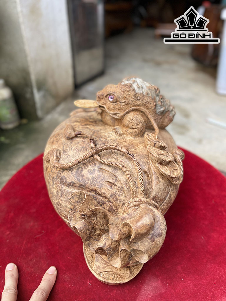 Tượng Thiềm Thừ Gỗ Nu Ngọc Am Cao 22 Ngang 33 Sâu 25 (cm)