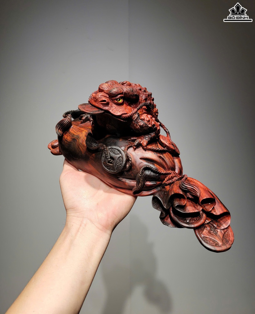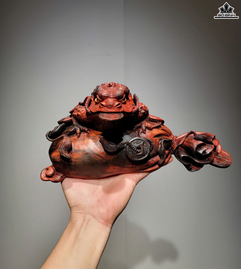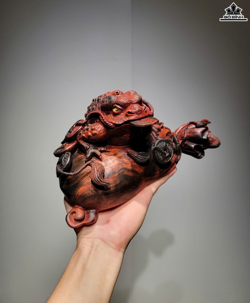 Tượng Thiềm Thừ Gỗ Trắc Cao 13 Ngang 30 Sâu 16 (cm)